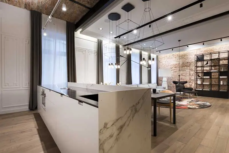 Marmur kojarzy się ze splendorem i luksusem. Co tu dużo mówić, to klasa sama w sobie. Nic więc dziwnego, że znalazł się w naszym zestawieniu. Możemy zdecydować się na marmurowe blaty w kuchni, albo drobny akcent w postaci blatu stolika kawowego. Innym ciekawym rozwiązaniem są płytki z rysunkiem marmuru, które możemy wpleść w aranżację każdego pomieszczenia.