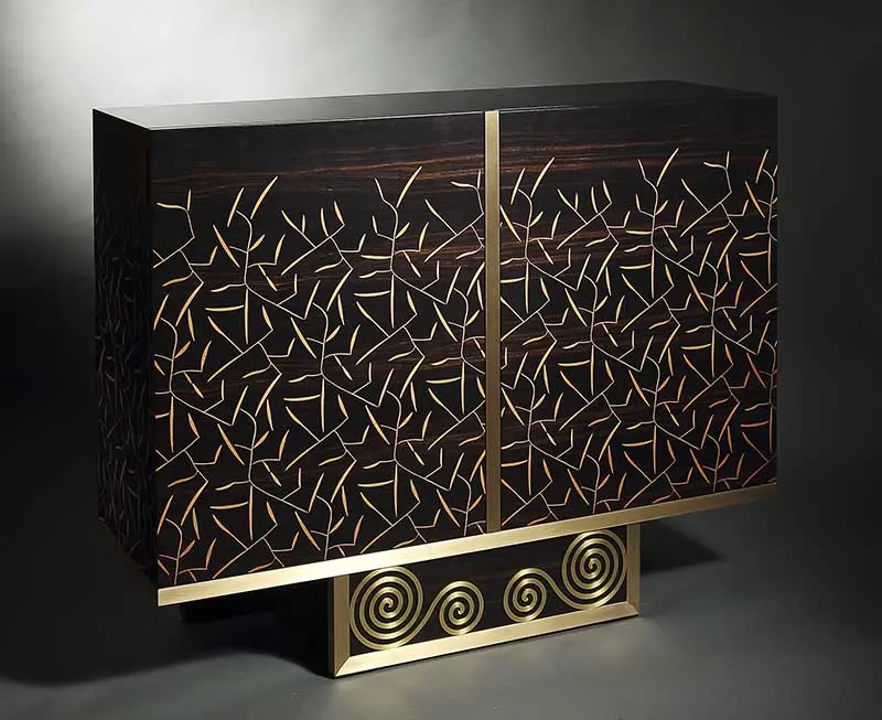 Artysta często używa drewna o intensywnym zabarwieniu i mocnym rysunku włókien, nie tylko egzotycznego, takiego jak heban, palisander czy paduk, lecz także europejskiego, na przykład klonu oliwnego, jesionu czy orzecha. Drewna, które wykorzystuje w projektach, nigdy nie bejcuje, dzięki czemu kolory nie płowieją mimo upływu lat. Czasami podkreśla je złotem lub platyną kładzioną w listkach pomiędzy rysunkiem a drewnem.