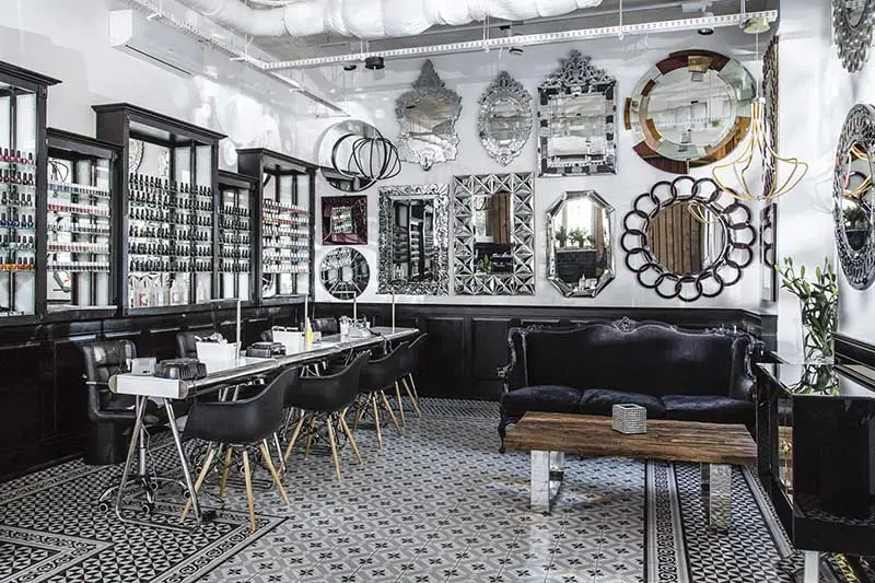 Ściany pokryte lustrami w zdobionych ramach, połączenie ultranowoczesnych i klasycznych, buduarowych mebli oraz oryginalna mozaika pod stopami. Nail & Beauty BAR to niezwykłe miejsce położone w samym sercu Warszawy, przy jednej z najurokliwszych ulic w stolicy.
