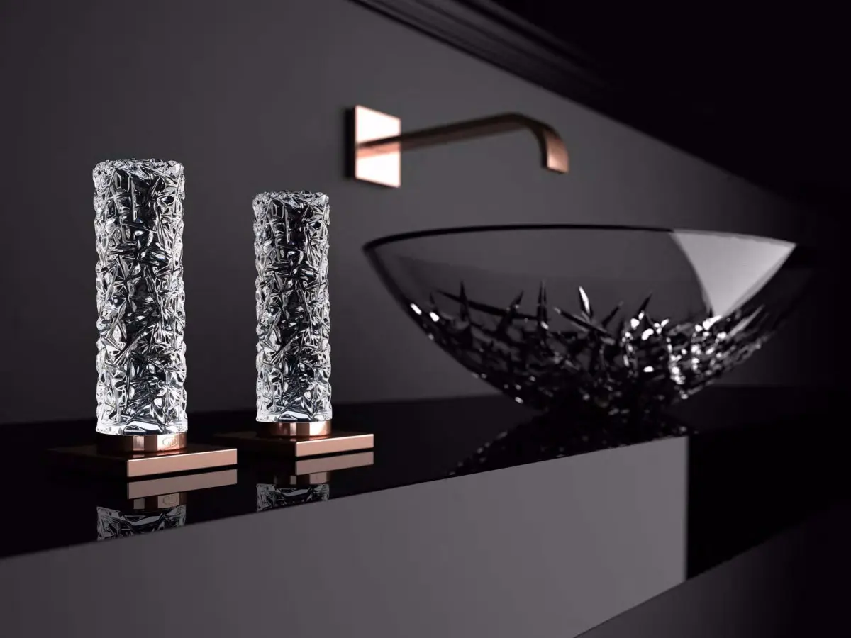 Umywalki i baterie od Glass Design inspirowane strukturą lodu stworzone przed najdoskonalszą matkę naturę, tworzą w rzeczy samej zrównoważoną symbiozę luksusu i ekscytacji formą. Hipnotyzujący efekt podkreśla odbijające się w kryształkach światło. Ta swoista gra wyostrza powielaną geometrię, prowadzącą do wspaniałego pokazu architektury światła.