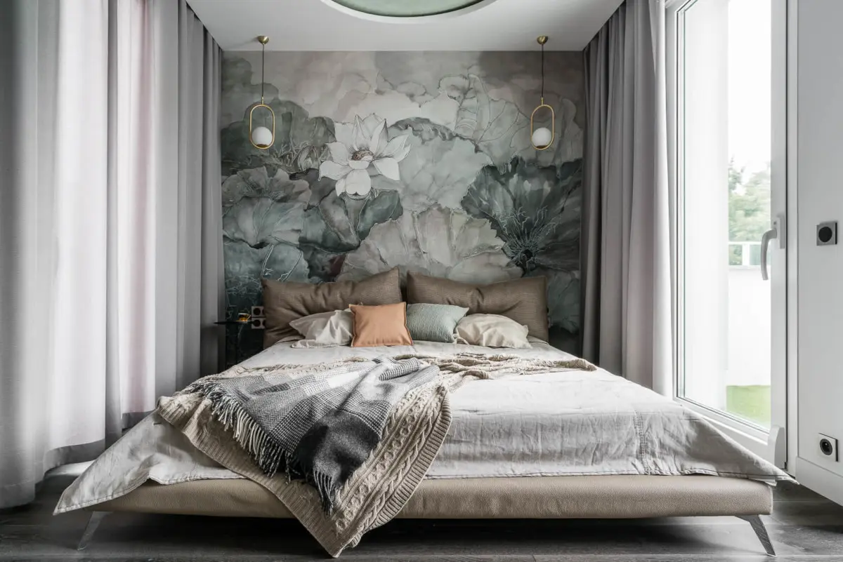 Tapeta z przeskalowanymi kwiatami w pastelowych odcieniach, króluje w projektach architektów. Specjalny system pozwala pokrywać nią ściany w łazience, również te, które mają bezpośredni kontakt z wodą – np. pod prysznicem.