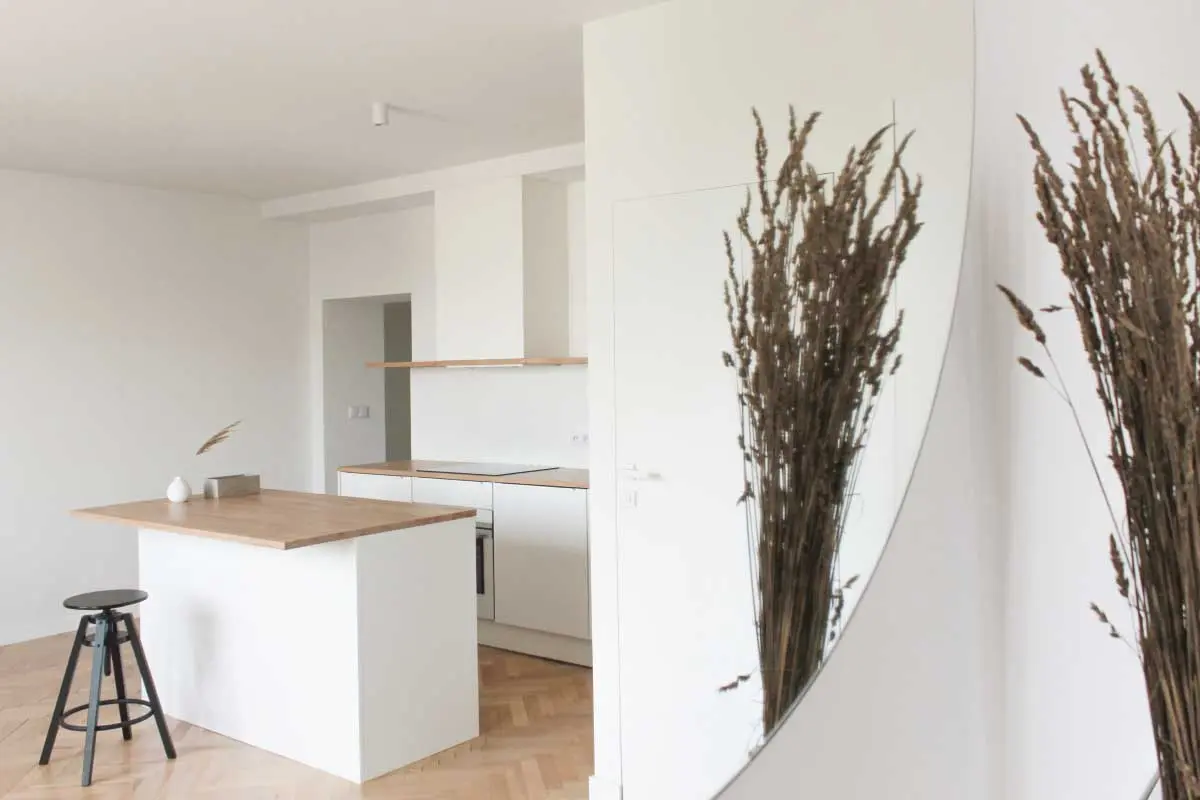 3. Dzięki odpowiedzialnemu wyborze surowców, mieszkanie to zostało wykonane z wielu biodegradowalnych materiałów takich jak drewniane meble, lniane czy bawełniane tkaniny.