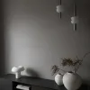 Kolekcja obejmuje lampy wiszące, kinkiety oraz lampy stojące, tworząc spójną i kompletną całość, która wprowadza do wnętrz harmonię opartą na doskonałych proporcjach, symetrii i szlachetnych materiałach.