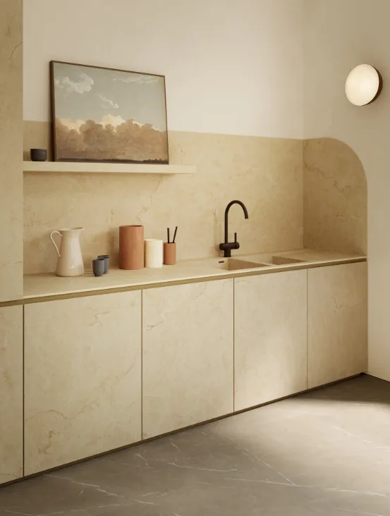 Przed Wami kolekcja włoskiego pioniera w dziedzinie ceramiki — marki Marazzi, która od dekad wyznacza kierunki i standardy w świecie wyrafinowanego designu. Tym razem producent zachwyca linią wielkoformatowych płyt, w których spotykają się dwa światy — ponadczasowa elegancja marmuru oraz ascetyczna, współczesna surowość betonu. To mariaż tradycji i nowoczesności, który wpisuje się zarówno w klasyczne, jak i minimalistyczne wnętrza, podkreślając ich charakter i nadając im architektonicznej głębi.