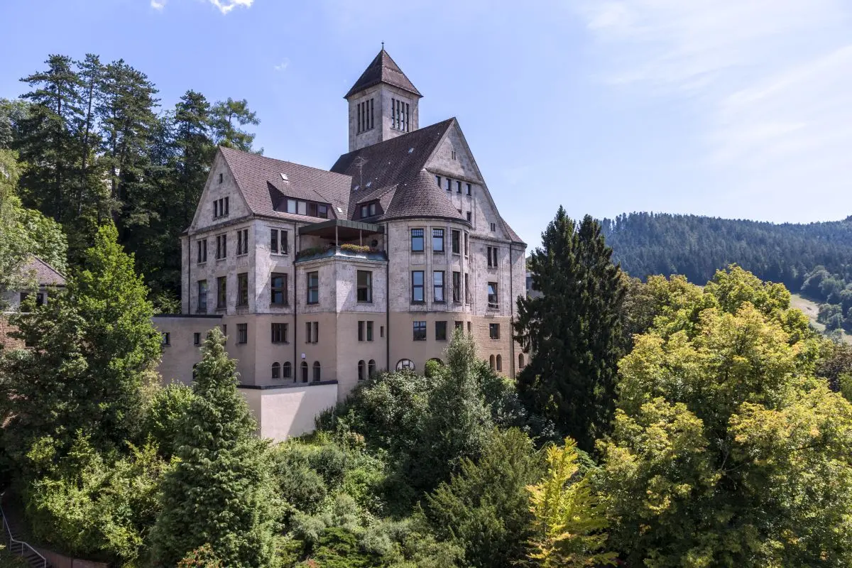 Nowo wyremontowane łazienki z powodzeniem zachowują równowagę między historyczną bryłą budynku a nowoczesnymi udogodnieniami. Zielone płytki z fabryki zegarów Junghans nadają łazienkom historycznego uroku, podczas gdy szare i piaskowo-szare płytki tworzą współczesne akcenty. Ponadczasową atmosferę podkreślają eleganckie umywalki i naścienne toalety z serii Starck 3. Połączenie integracyjnego komfortu i designu w łazience bez żadnych barier jest szczególnie udane, między innymi dzięki umywalce Vital przystosowanej do wózków inwalidzkich i toalecie ściennej Vital z serii Starck 3.