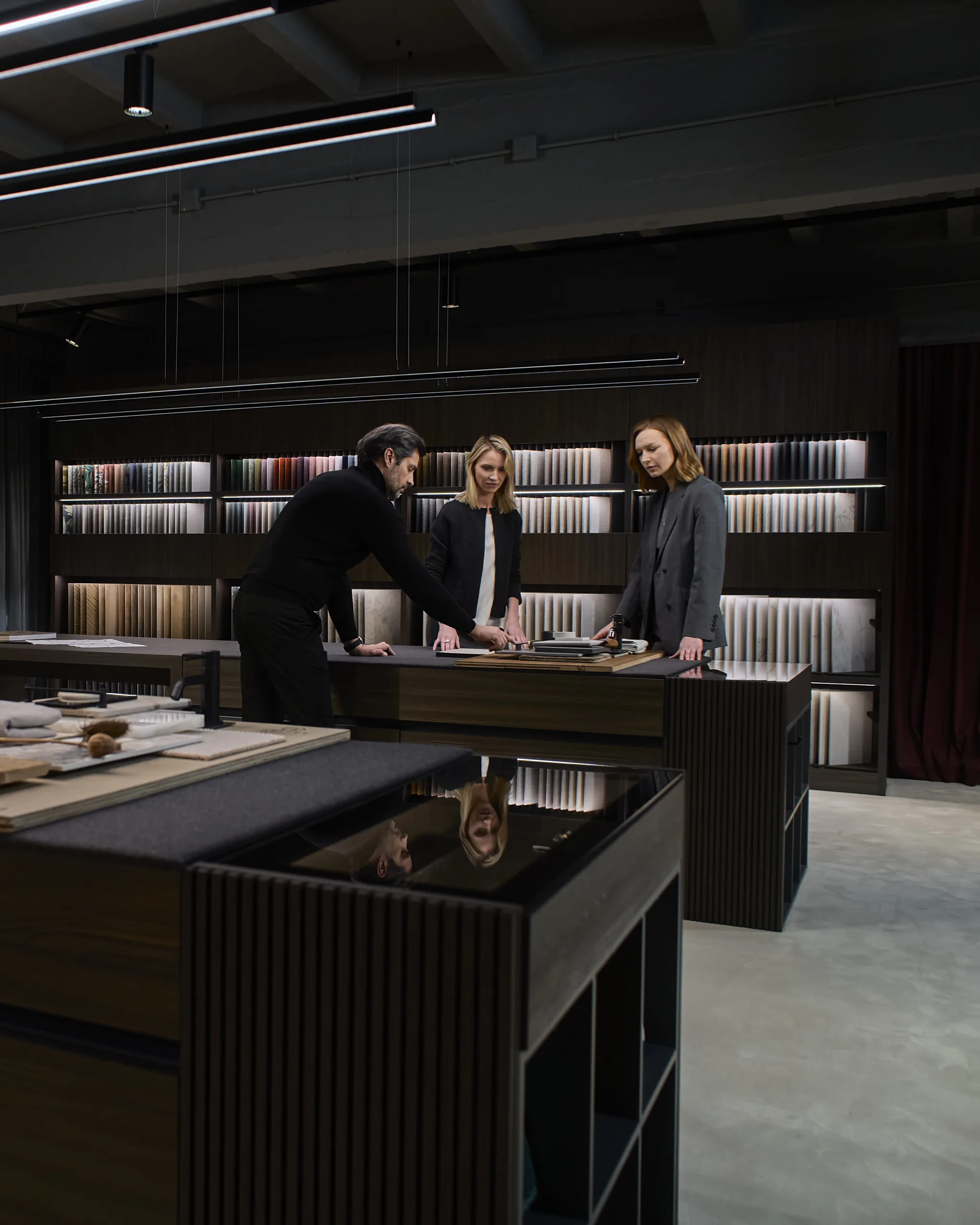 W salonie znajdziesz dedykowane miejsca do tworzenia kreatywnych moodbordów z dostępnych produktów. Usprawniliśmy również pracę on-line, czyli konsultacje i spotkania z handlowcami za pośrednictwem wideokonferencji, a także komunikację klient-architekt. Na specjalne życzenie możemy również dowieźć próbki, katalogi do Waszych biur znajdujących się na terenie Warszawy.