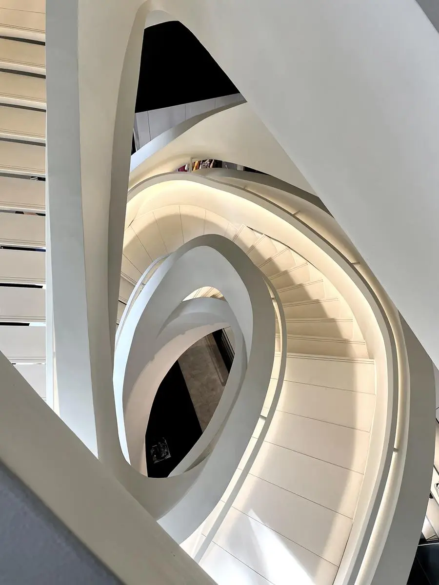 Skorzystałam z okazji i przyznam – nie mogłam się doczekać, żeby odwiedzić wnętrze butiku Armani przy 5th Avenue. Jest to realizacja projektu Massimiliano Fuksasa, przy którym miałam okazję pracować w trakcie stażu w jego rzymskim biurze w latach 2007 – 2008” mówi Daszkiewicz. „Wnętrza butiku robią ogromne wrażenie, ale wzrok na dłużej zatrzymuje się przy dynamicznej i zarówno ekspresyjnej klatce schodowej w formie tornada, która prowadzi na ostatnią kondygnację obiektu, gdzie znajduje się świetna restauracja
