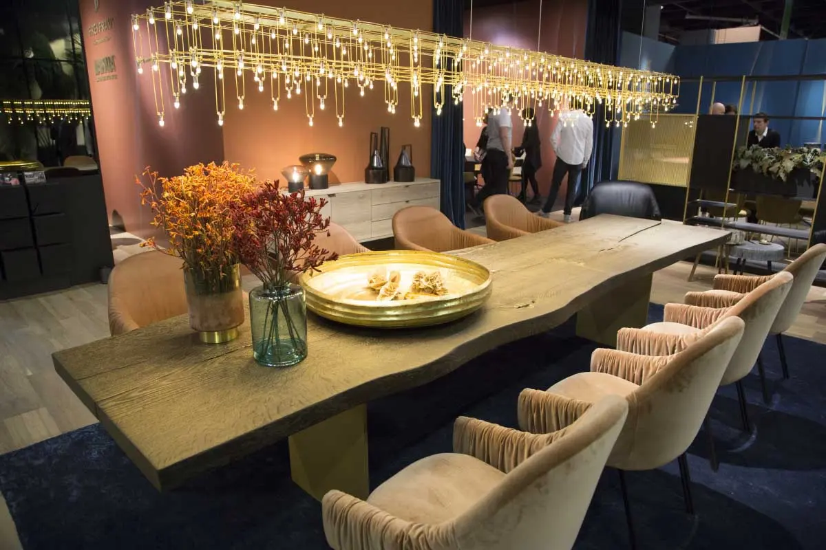 Zdradzamy, że podczas targów w Kolonii triumf święci kolor, co potwierdza plotki o detronizacji szarości. Dominują meble w kolorze Living Coral oraz color trends 2019 Pantone. Ponad to powracają kredensy, wygodne fotele i lekkie sofy. Pokoje dzienne staną się sceną dla ikon designu. Meblowi „soliści” będą grać główną rolę, a otoczenie będzie dla nich jedynie dodatkiem. Drewno nadal będzie królować i to w najróżniejszych rodzajach, wybarwieniach oraz wykończeniach. Wzory oraz printy utrzymają swój status, zdobiąc meble tapicerowane czy ściany, poprzez tapety o odważnych deseniach.