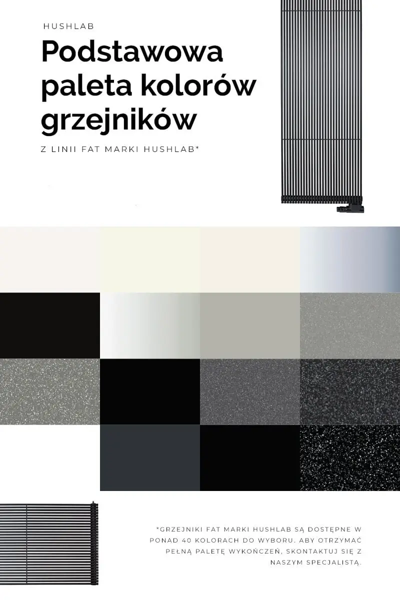 Możliwości personalizacji grzejników dekoracyjnych marki HushLab zwiększa dostępność kilku rozmiarów oraz ponad 40 kolorów z palety RAL do wyboru.