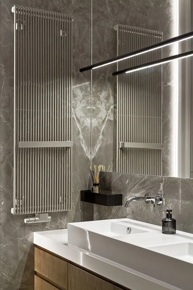 Dekoracyjna forma grzejników z linii FAT sprawia, że doskonale odnajdują się w aranżacji wnętrz, takich jak salon, jadalnia, sypialnia, hol czy łazienka. W przypadku chęci zastosowania grzejnika w pomieszczeniu sanitarnym, można dobrać do niego wieszak na ręcznik Bold w kolorze czarnym lub białym do wyboru.