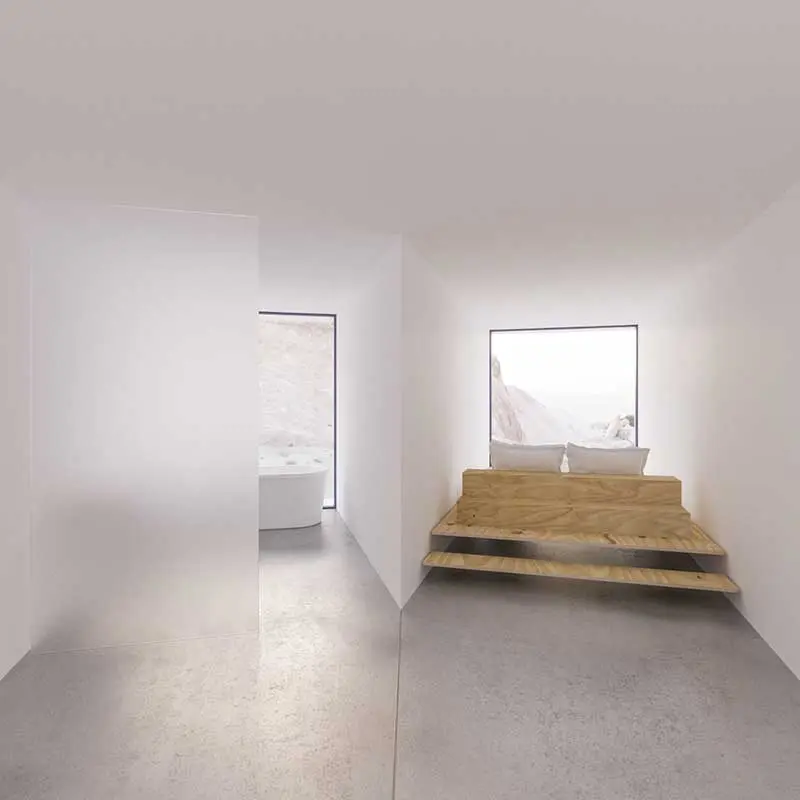 Pomoc w opracowywaniu struktury koncepcji zapewnił Albert Taylor, współtwórca mieszczącej się w Londynie dużej firmy AKT II. Powierzchnia domu wyniesie 200 m kw. Znajdą się w nim: salon, kuchnia, jadalnia oraz trzy sypialnie. Na wizualizacjach można zobaczyć surowe wnętrze z betonową podłogą. Ściany są białe, a wystrój minimalistyczny. Umieszczono tam np. meble wykonane ze sklejki, a także siedzenia Misfits autorstwa Rona Arada, u którego Whitaker pracował wcześniej w londyńskim studiu. Przez kwadratowe ramy okienne widać błękitne niebo i naturalne nierówności terenu, a fasetowane sufity dają w niektórych obszarach efekt przebywania w formie krystalicznej.
