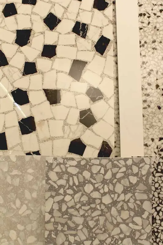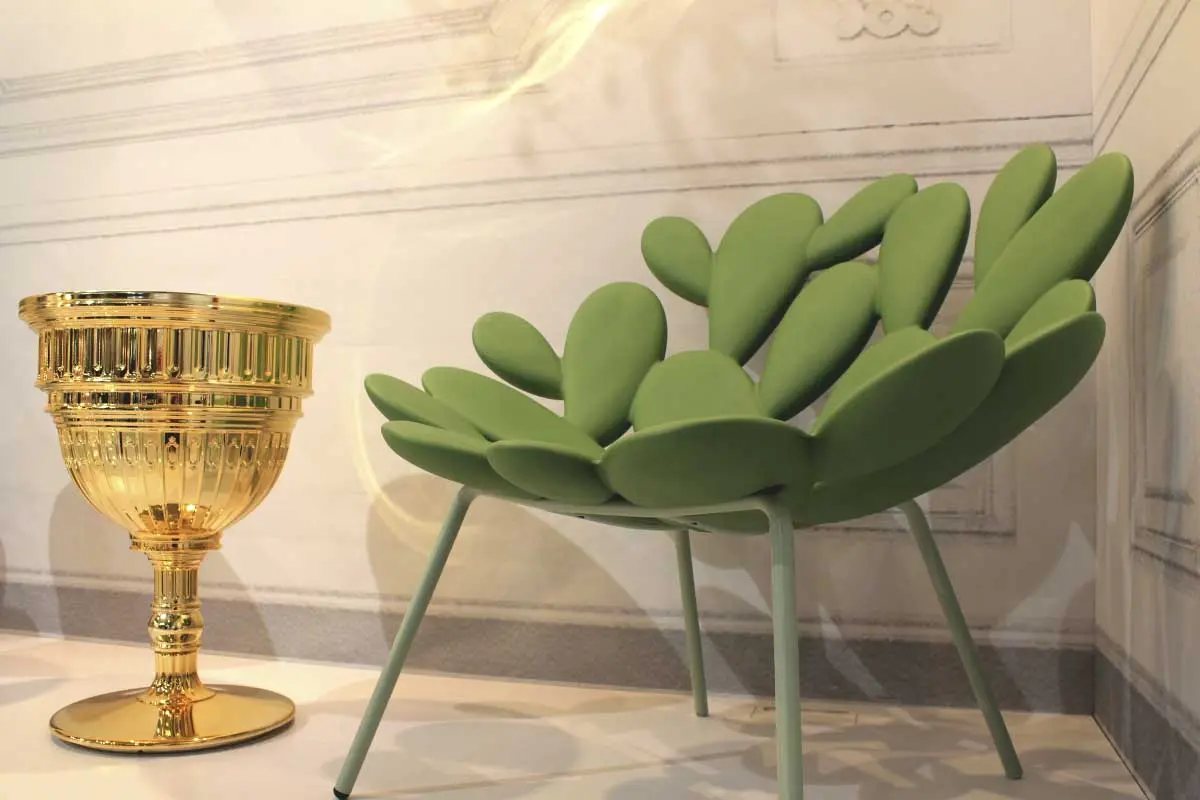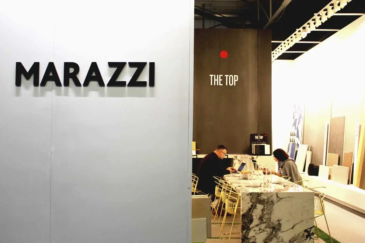 Dało się również zauważyć, że nadal popularne jest łączenie różnych materiałów i tekstur. Marmur z drewnem i warstwowe nakładanie dywanów, na pewno pozostanie z nami na przyszły rok. Ponadto moda na lastryko, okazała nie być chwilową fanaberią i trwa w najlepsze. Waśnie ten motyw pojawiał się na blatach mebli oraz płytkach, w tym jednej z najbardziej rozpoznawalnych włoskich marek – Marazzi. Także złote dodatki i akcesoria będą nadal wykorzystywane w aranżacji wnętrz.