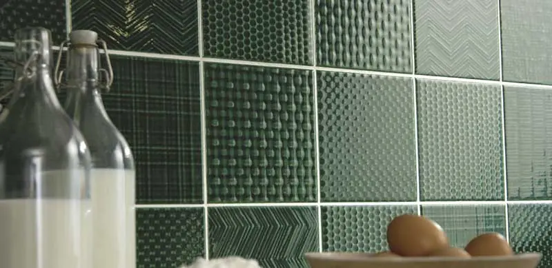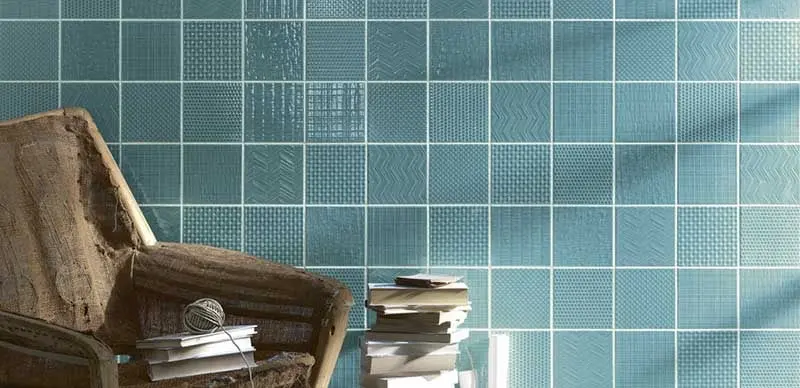 Przykładem takiego rozwiązania jest kolekcja włoskich płytek Tissue od marki Tonalite. W tej linii znajdziemy nie tylko siedem różnych tekstur inspirowanych fakturą tkanin, ale też osiem modnych kolorów, które pozostają w palecie niebieskości, zieleni i fioletu. Żeby nie było zbyt odważnie, w kolekcji znajduje się również stonowany odcień Bianco. Płytki z tej rodziny występują tylko w jednym rozmiarze: 15×15 cm a prezentują się najlepiej, gdy połączymy w ramach jednego wnętrza różne faktury na zasadzie patchworku.