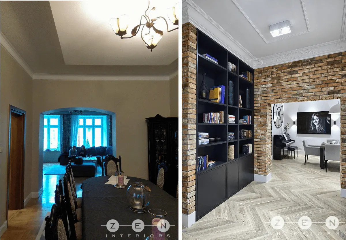 Przed Wami kolejny wpis z serii ,,Metamorfoza Tygodnia”. Tym razem prezentujemy jadalnię, salon oraz hol, które przeszły solidny lifting pod przewodnictwem biura projektowego ZEN Interiors. Nowe wnętrza zyskały przede wszystkim na świeżości. Zrobiło się tu przestronniej, jaśniej i bardziej stylowo, pomimo że niektóre elementy wyposażenia zostały nieruszone. Jednak w tym przypadku nie możemy mówić o cichych bohaterach metamorfozy, bowiem jeden konkretny czynnik miał tu niebagatelne znaczenie. Mowa oczywiście o czerwonej cegle, która wprowadziła nową jakość, a przy tym tworzy piękne tło dla toczącego się tu życia.