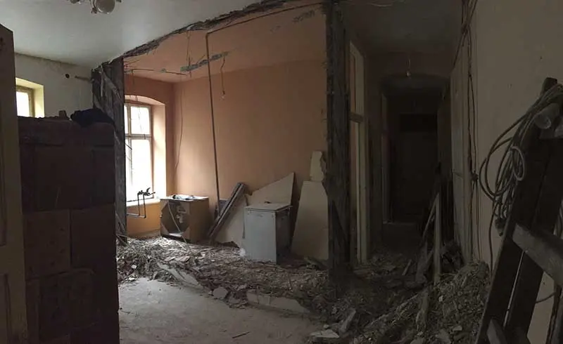 Największym problem na jaki natrafił wykonawca w trakcie prac to ściana, która miała być z cegły, a okazała się drewnianą przeszkodą pełną gwoździ. Wszystkie te ściany musiały być usunięte. Wykonawca metamorfozy zwraca również uwagę, że jeśli usuwamy ściany, to powinniśmy pamiętać, że podłogi mogą być na różnych poziomach, a w przypadku mocno osłabionego tynku, zachodzi konieczność zastosowania tynku typu siatka.