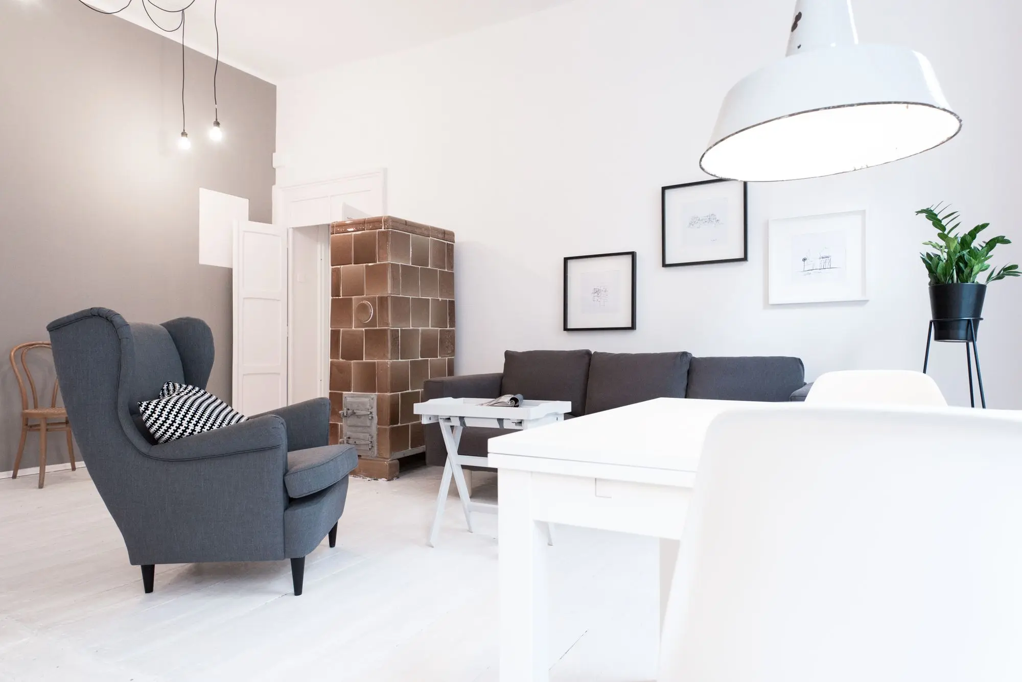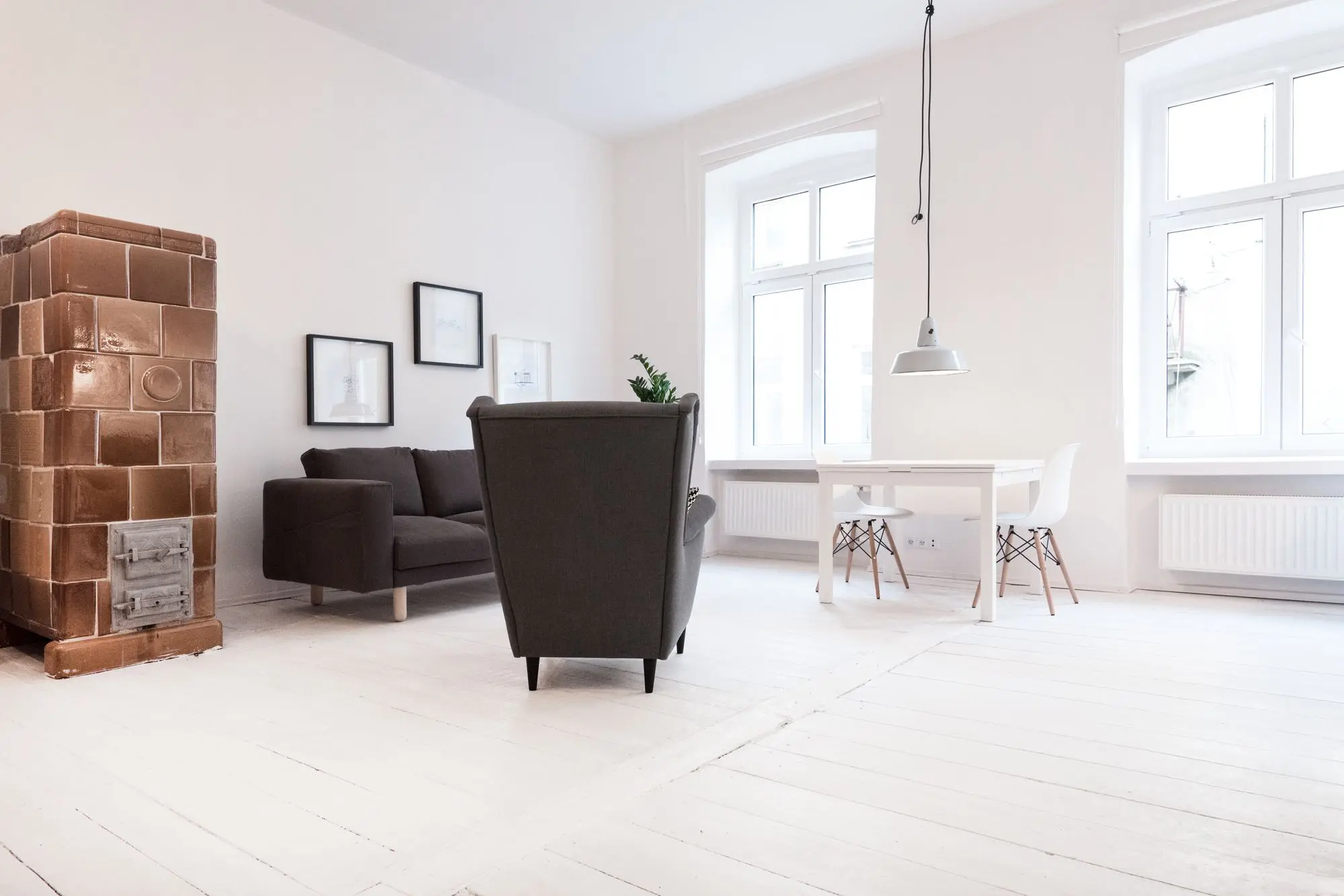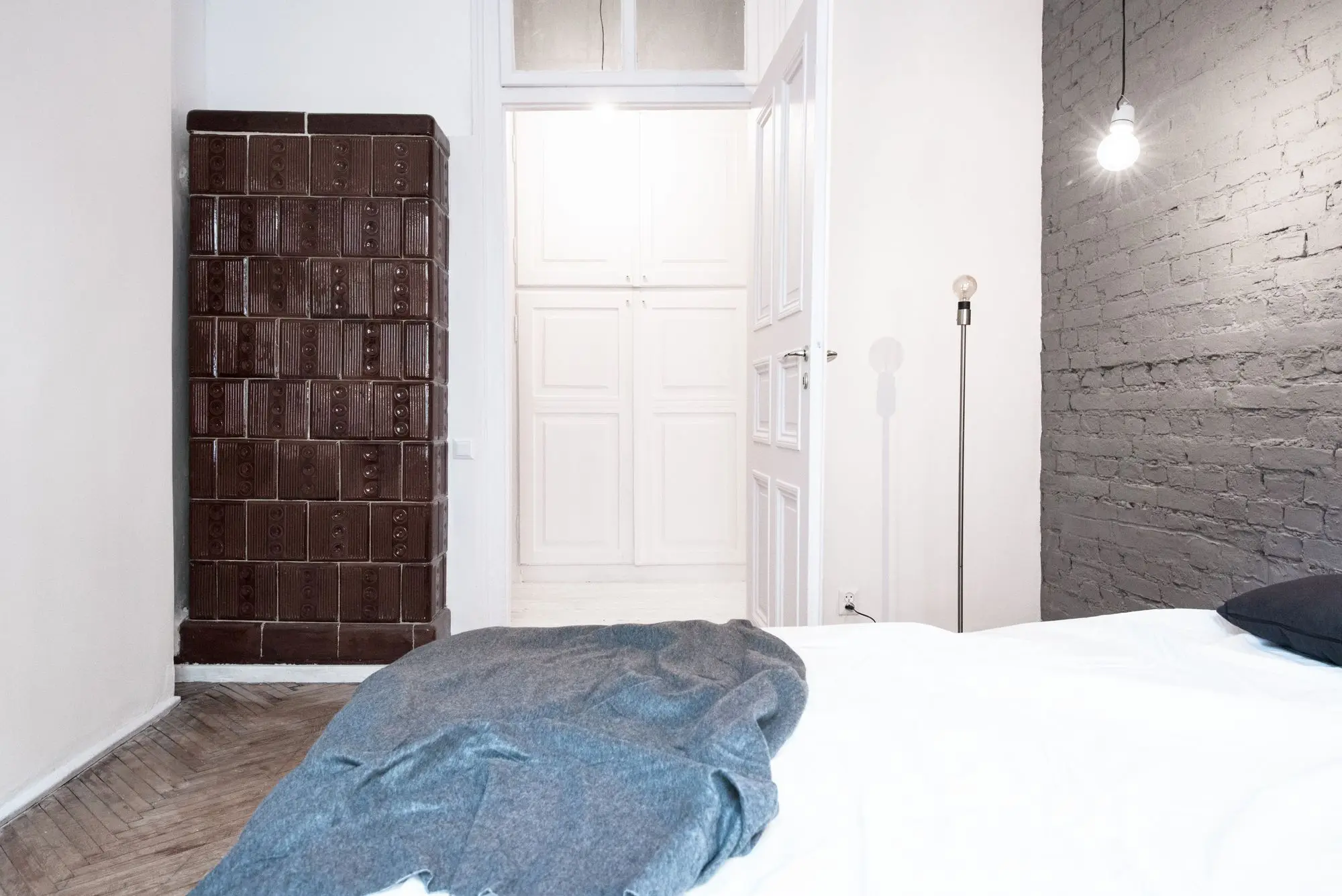 To, co podoba nam się w tym mieszkaniu najbardziej, to zachowanie pierwotnych starych pieców kaflowych i drewnianej podłogi.