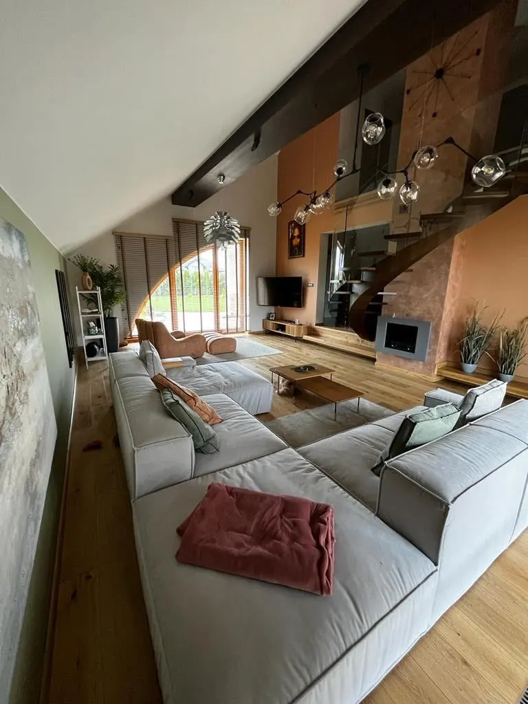 Metamorfoza strefy dziennej przeprowadzonej przez Milenę Strus z pracowni Mist Design, obejmowała kreatywne podejście do dość trudnej przestrzeni, jakim był rodzinny salon. Skosy, łuki, schody i dość duży metraż to nie łatwi przeciwnicy przy aranżacji przytulnej rodzinnej przestrzeni.