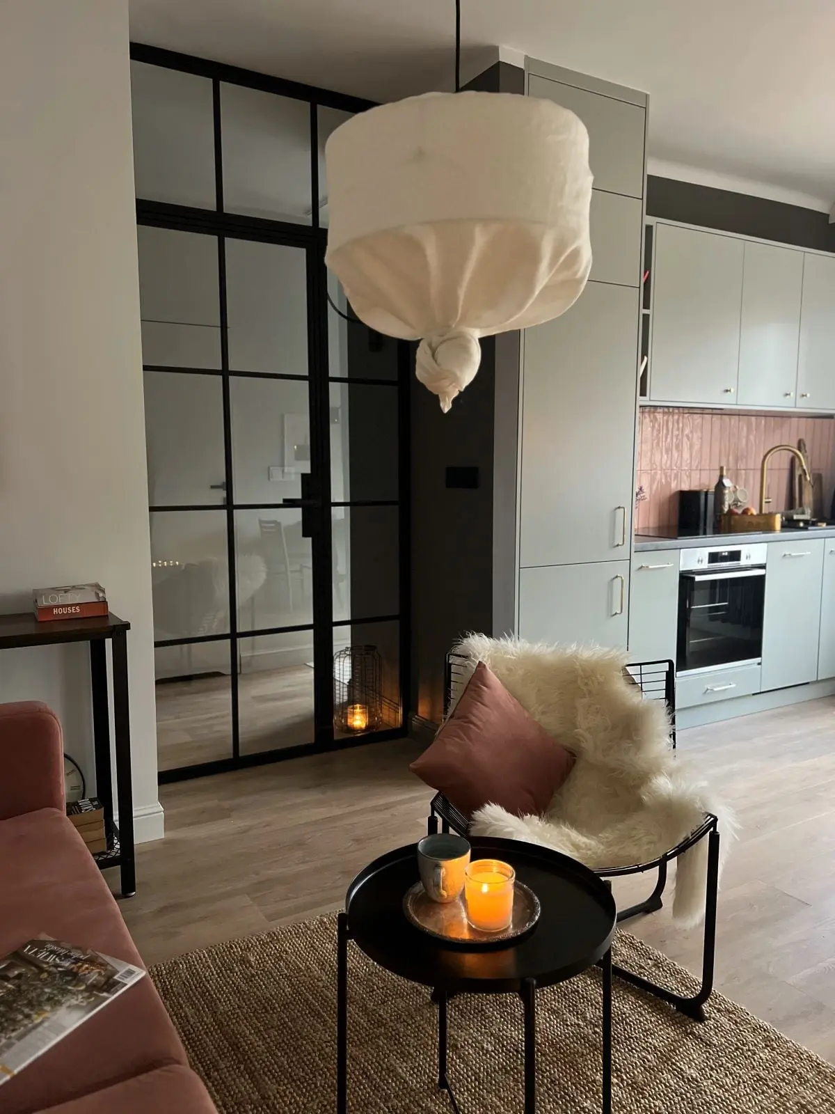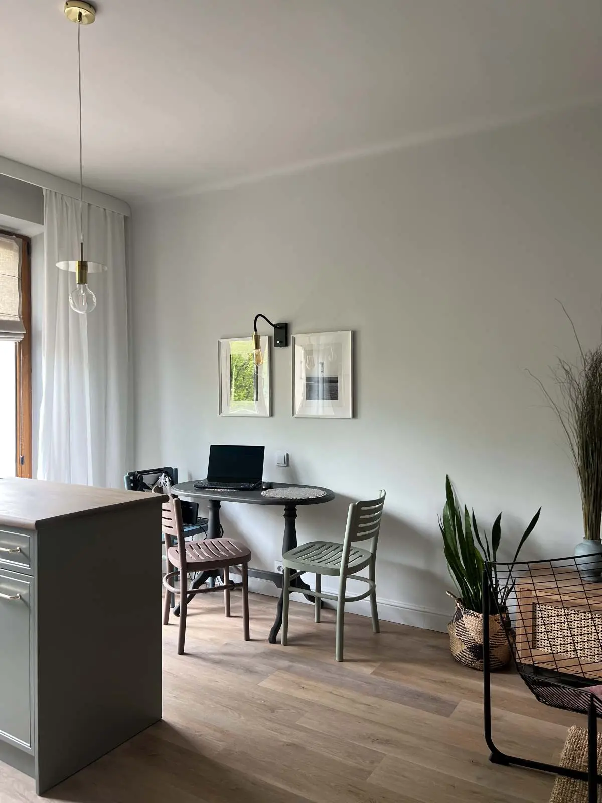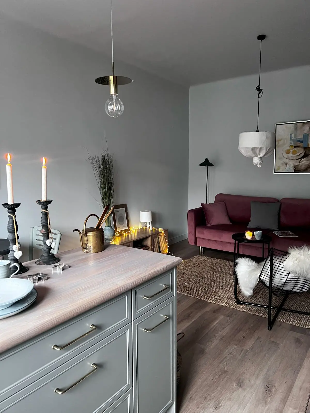 Następnie przyszedł czas na zmiany funkcjonalne. Z jednopokojowego lokum powstały dwa oddzielne pokoje z kuchnią w aneksie. Teraz każdy ma swój kąt i swoje miejsce. Kuchnia stała się sercem domu, a pokój sypialny schronieniem od zgiełku.