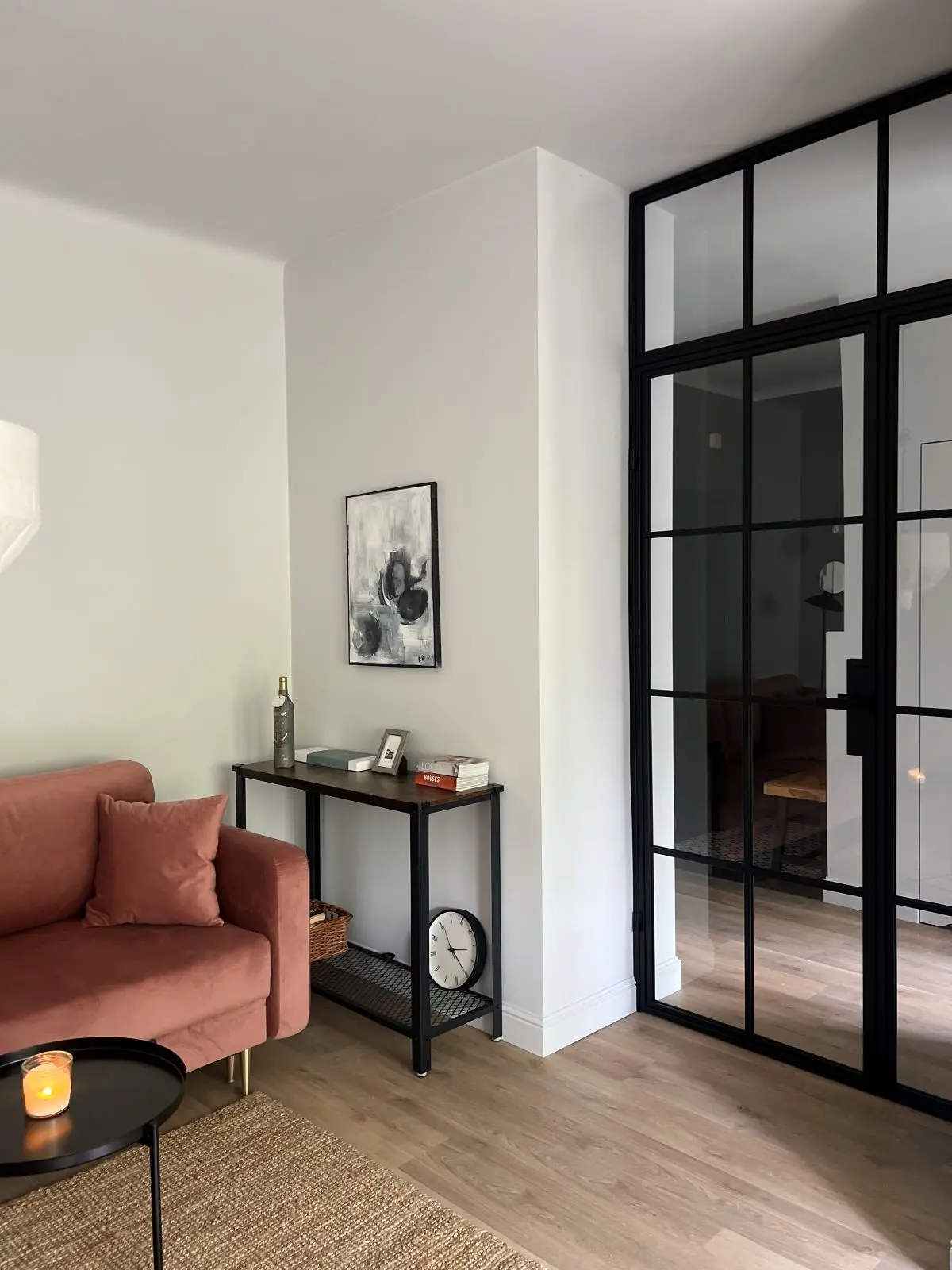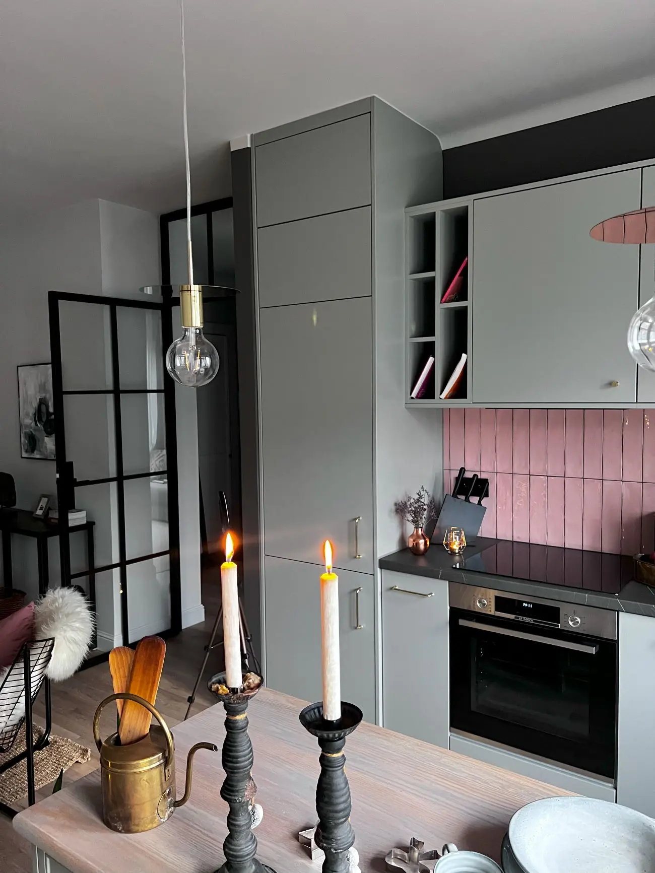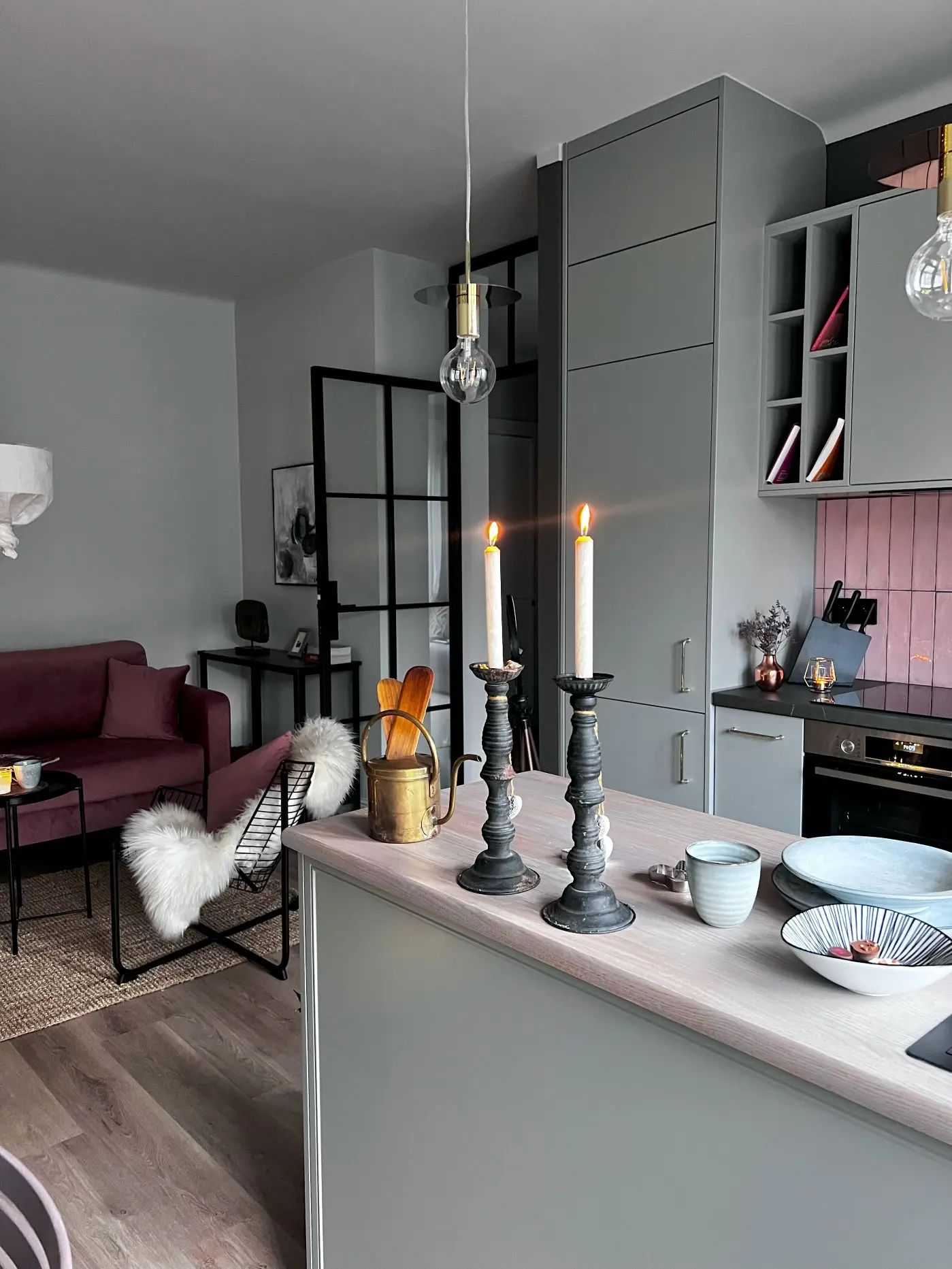 Następnie przyszedł czas na zmiany funkcjonalne. Z jednopokojowego lokum powstały dwa oddzielne pokoje z kuchnią w aneksie. Teraz każdy ma swój kąt i swoje miejsce. Kuchnia stała się sercem domu, a pokój sypialny schronieniem od zgiełku.