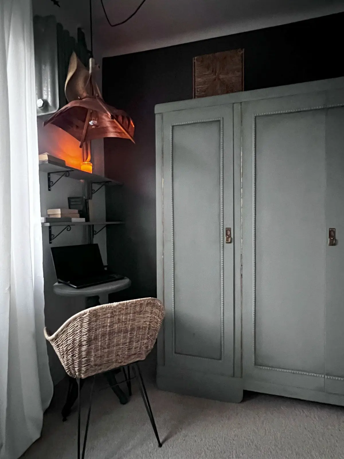 Cała inwestycja odbywała się pod czujnym okiem architekt, przy pełnym zaufaniu właścicielki. Stara szafa została odrestaurowana farbami Annie Sloan, stała się klejnotem sypialni, nadając jej charakteru i duszy.