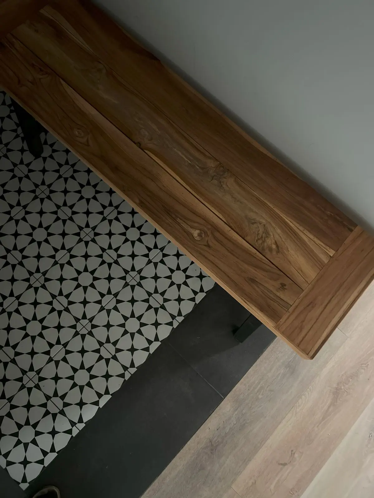 Do nowej aranżacji architekt wybrała deski drewniane Charme Parquet szczotkowane F6 olejowoskowane, dostępne w salonach Internity Home. Do stylistyki wnętrza pasowały idealnie w stylu rustykalnym. Doskonale wpisały się w stylistykę, dodając wnętrzu charakteru i ciepła. Ich ciemna, surowa powierzchnia, delikatnie przecierana i ułożona w klasycznym wzorze, stanowiła doskonałe tło dla nowej przestrzeni.