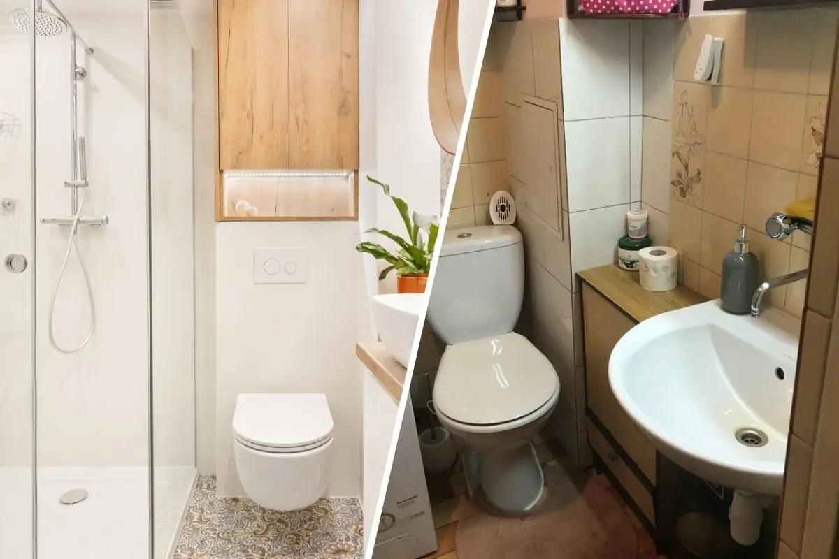Mikro łazienka również zyskała nowy wygląd. Typowe prl – owskie płytki zastąpiła ponadczasowa biel rozjaśniająca i optycznie powiększająca wnętrze. Na podłodze oraz w strefie umywalkowej pojawiła się wzorzysta ceramika w klimacie azulejos. Wraz z drewnianymi detalami wprowadza do minimalistycznej aranżacji akcenty artystycznej bohemy. Pomieszczenie, choć niewielkie, jest w pełni funkcjonalne a przede wszystkim dopasowane do potrzeb inwestorki.
