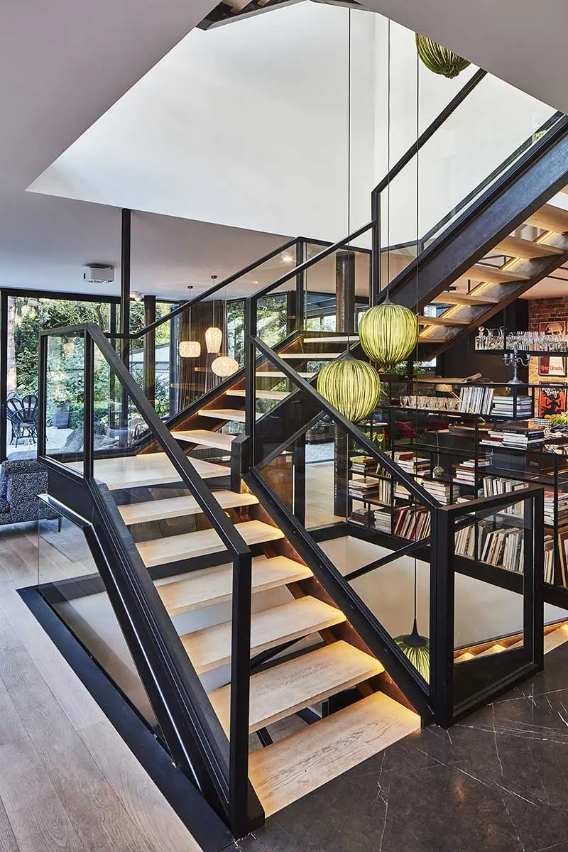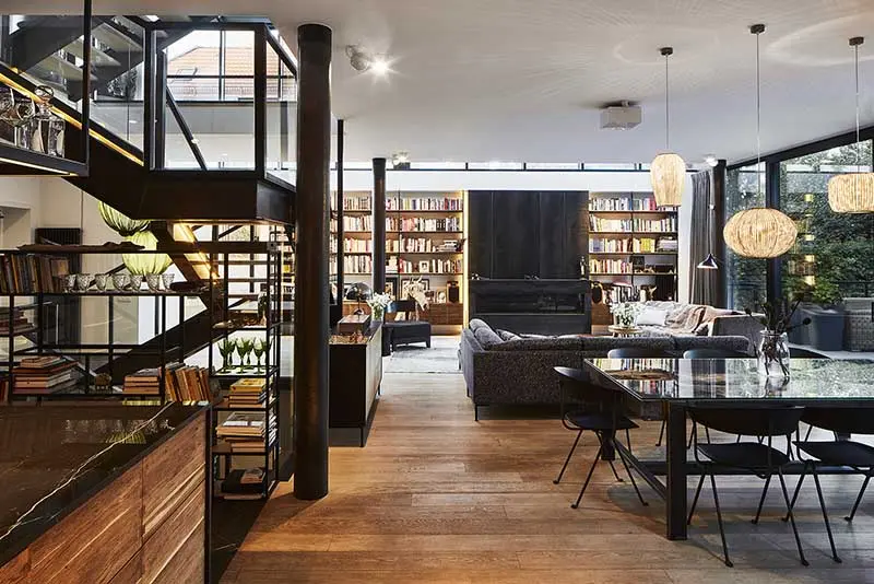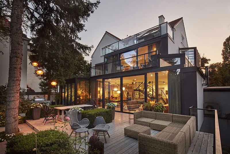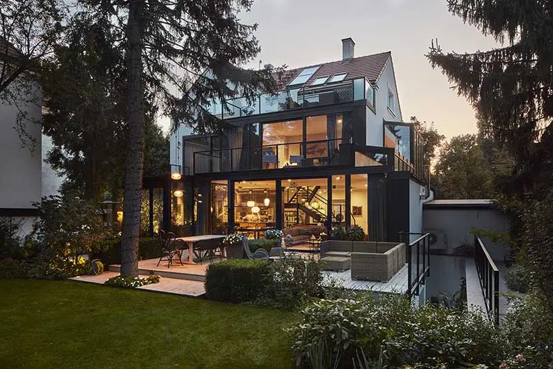 Elementy charakterystyczne dla tej willi to stalowe konstrukcje i ogromne otwieranie przeszklenia.