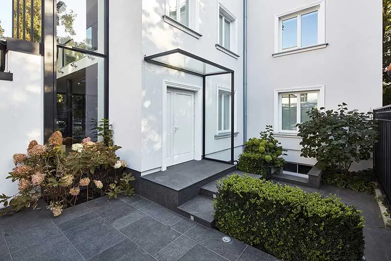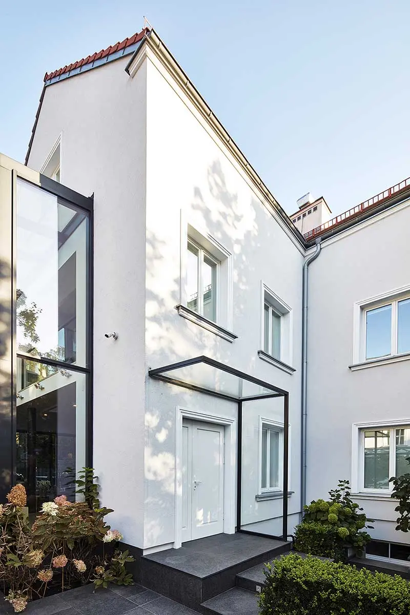 Elewacja od strony ulicy została jedynie odświeżona, a przebudowany został dom od strony ogrodu. Lekka szklana forma tworzy płynne przejście z domu na otaczający go ogród.