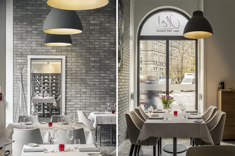 Bardzo ważnym, a niejednokrotnie pomijanym elementem w projektach jest oświetlenie. To odpowiednio dobrane potrafi stworzyć pożądany klimat i przede wszystkim uwypukla wszystkie mocne strony wnętrza. W przypadku tej restauracji, architekci zdali się na profesjonalistę z naszego showroomu Internity Home – Wojciecha Mantura, który na co dzień zajmuje się projektowaniem oświetlenia we wnętrzach.