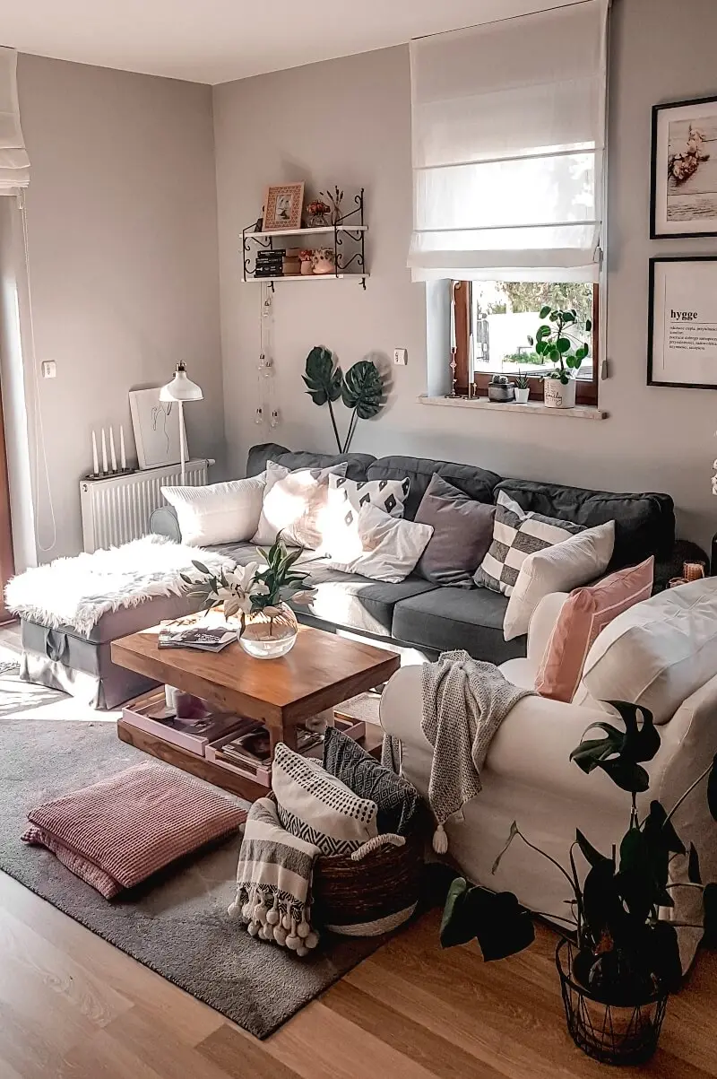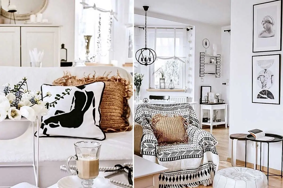 Wnętrza cluttercore to kraina bibelotów, pamiątek i „walczących” o miejsce książek. Ściany zdobią galerie obrazków, pełno tu miękkich poduszek, koców, roślin w dekoracyjnych doniczkach i koszach. Zwolennicy tego trendu twierdzą, że więcej oznacza lepiej, a wypełnienie domu przedmiotami pełnymi sentymentu sprawia, że staje się on zarówno inspirujący, jak i przytulny.