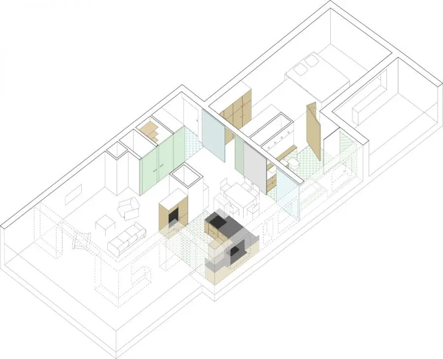 Warto podkreślić, że koniec otwartych układów wnętrz nie oznacza, że nagle zaczniemy na nowo budować ściany. Tego typu plany są najpopularniejszą metodą projektowania nie tylko wnętrz prywatnych, ale i biurowych od dekad. Znamy też wiele przypadków realizacji, zapewne również z własnego doświadczania, gdzie celowo burzone były ściany, by wprowadzić otwartą przestrzeń. Zatem odtworzenie podziałów z punktu widzenia praktycznego i ekonomicznego nie jest prostym zadaniem. Jeśli przestrzeń została zaprojektowana w formie otwartego planu, nie można jej ot tak podzielić. Być może droga ku zamkniętym układom, wiedzie przez konkretniejsze wydzielanie stref funkcjonalnych. Nie będziemy dążyć do posiadania oddzielnych pokoi, lecz uwzględniać strukturalne definicje, nadające coś wyjątkowego każdej strefie, jednocześnie pozwalając im się łączyć. Powrót do amfiladowych planów raczej nie jest możliwy. Bardziej realnym scenariuszem jest wydzielanie przestrzeni za pomocą przepierzeń, parawanów czy ażurowych meblościanek. Ciekawym pomysłem są też przesuwne drzwi, pozwalające na dowolną konfigurację pomieszczeń w zależności od potrzeb domowników.