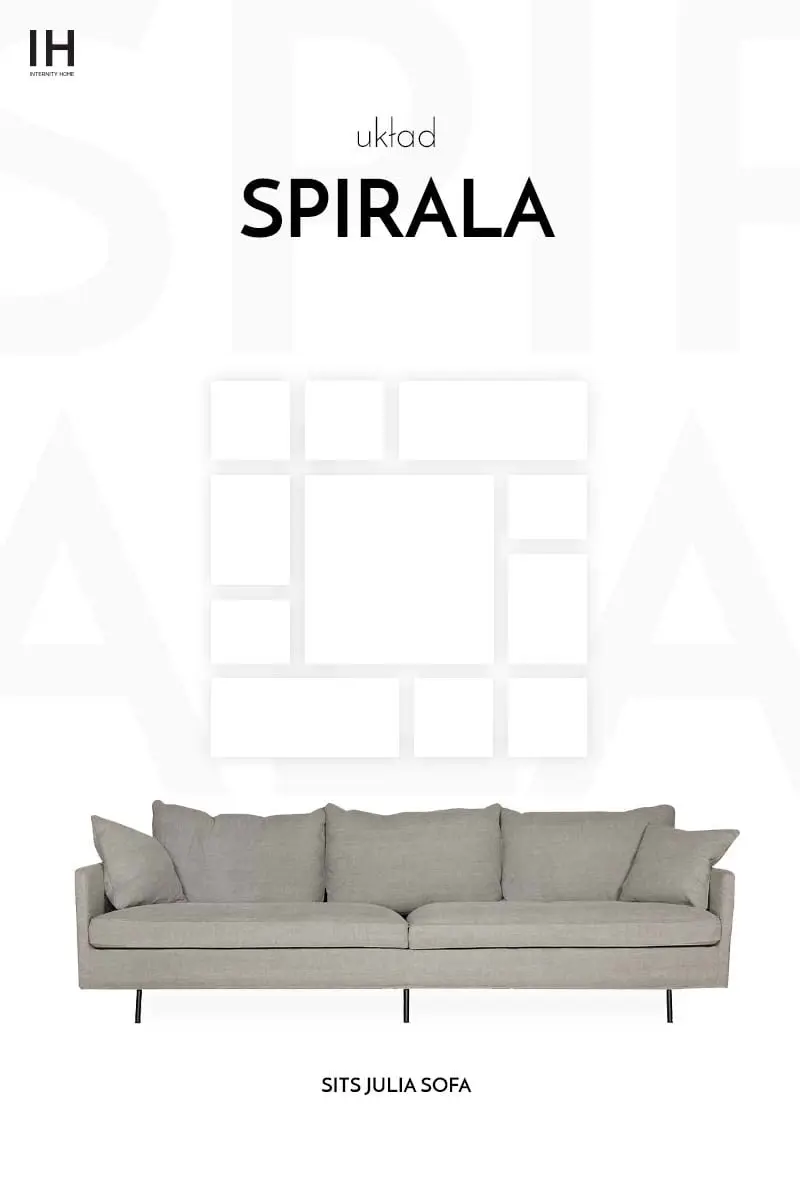 Zdecyduj się na ten układ, jeśli twoja kolekcja jest eklektyczna, czyli posiadasz liczne zdjęcia, plakaty, grafiki, które nie są spójne stylistycznie. Możesz uzupełnić je o takie elementy jak zegar, lustro, kwietnik czy kinkiet.