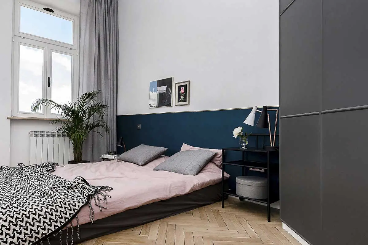 Moda na ceglane ściany obecna jest w trendach aranżacji wnętrz od wielu lat. Jednak obecnie odchodzi się od jej pomarańczowej wersji, która była silnie związana ze stylem industrialnym i miała współtworzyć pofabryczny klimat. Coraz częściej cegła malowana jest na biało lub szaro, dzięki czemu zyskuje na elegancji i optycznie powiększa pomieszczenia. Projekt sypialni One Design udowadnia, że biała, ceglana ściana jest świetnym tłem dla wyposażenia kojarzonego ze stylem glamour, np. pikowanego, welurowego zagłówka.
