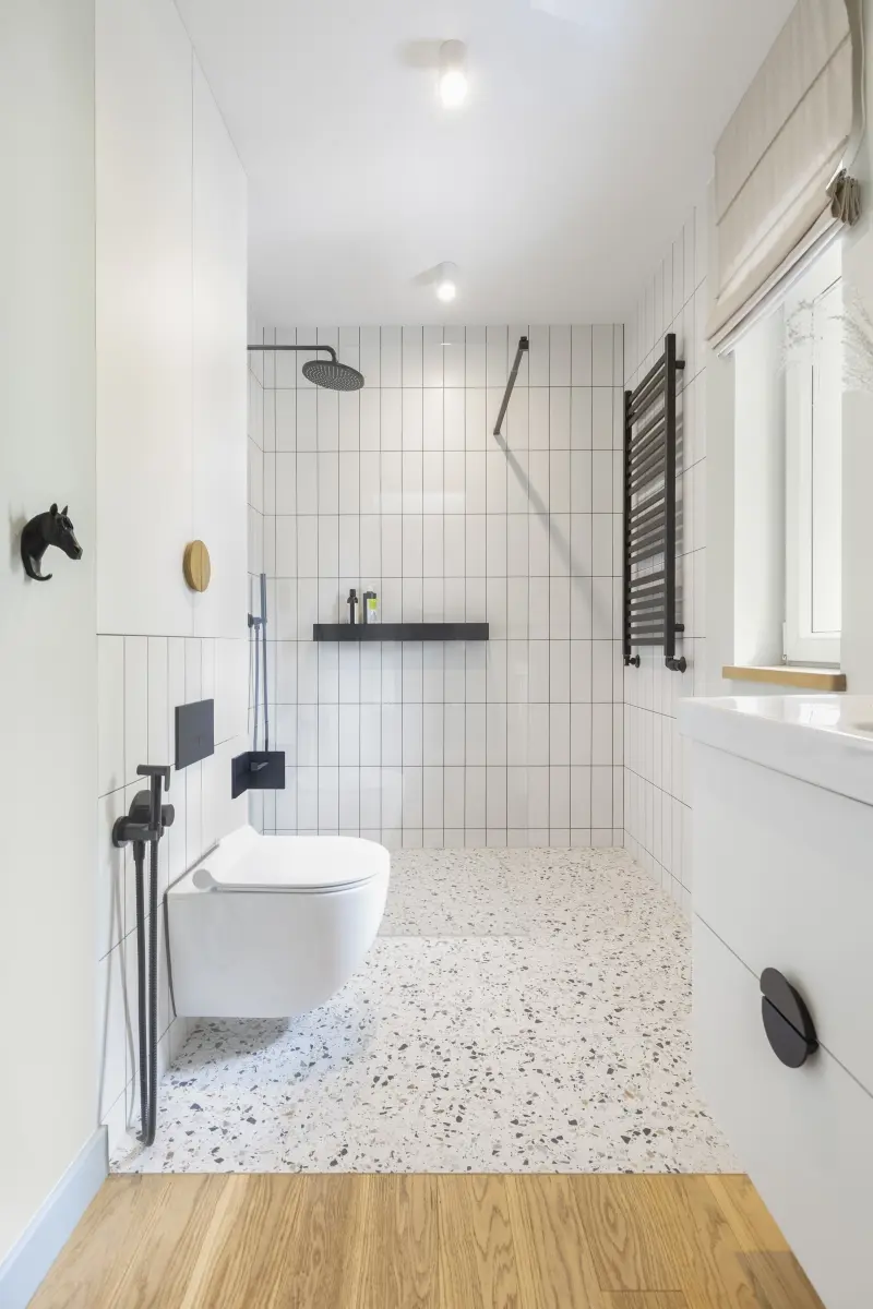 Modny trend to z pozoru zwykłe kwadratowe kafle. Niczym się niby nie wyróżniające, a jednak mają w sobie magię prostoty i świeżości oraz nawiązują do trendów aranżacyjnych z dawnych lat. Dobrze wyglądają w łazience w połączeniu z drewnem jak również w łazience całej w bieli.