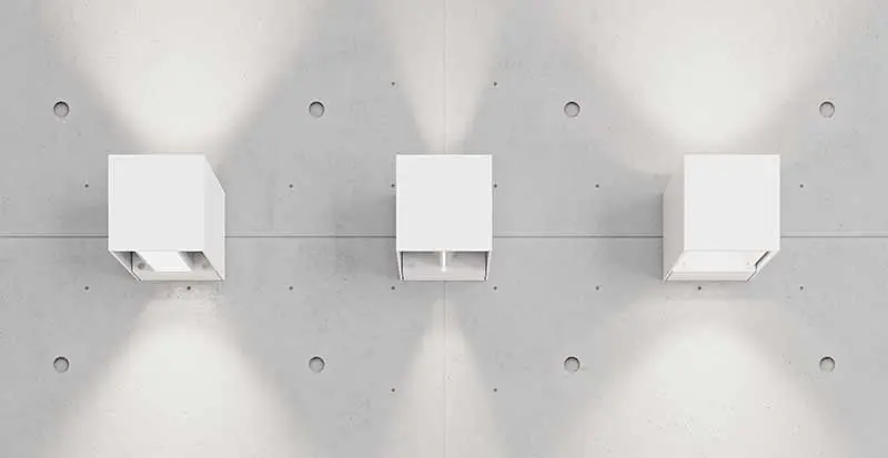 Do wyboru mamy paski LED w szczelnych profilach aluminiowych lub kinkietami, które zapewniają światło skupione. Doskonałym rozwiązaniem jest kinkiet MR SIDE, który posiada klasę szczelności IP54 oraz ruchome „klapki” za pomocą których możemy kształtować kąt rozsyłu światła – indywidualnie góra-dół. Oprawy te także możemy ściemniać klasycznie (dowolnym ściemniaczem do LED na ścianie) lub bezprzewodowo – CASAMBI. Możemy także zastosować oprawę Miss FLEXY zamocowaną w formie kinkietu i wyposażoną w antyolśnieniowy raster (plaster miodu).