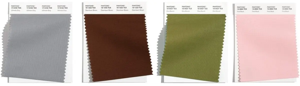 Kolejny moodboard barwny powstał z myślą o estetyce japandi. Styl ten, okrzyknięty stylem 2021 roku z pewnością utrzyma swój status przez najbliższe lata. Silne zakorzenienie japandi w naturze, zostało wyrażone poprzez głęboki, ciepły brąz oraz oliwkową zieleń. Rolę neutrala idealnie spełni Ultimate Gray, natomiast jako akcent barwny sprawdzi się delikatny odcień różu.