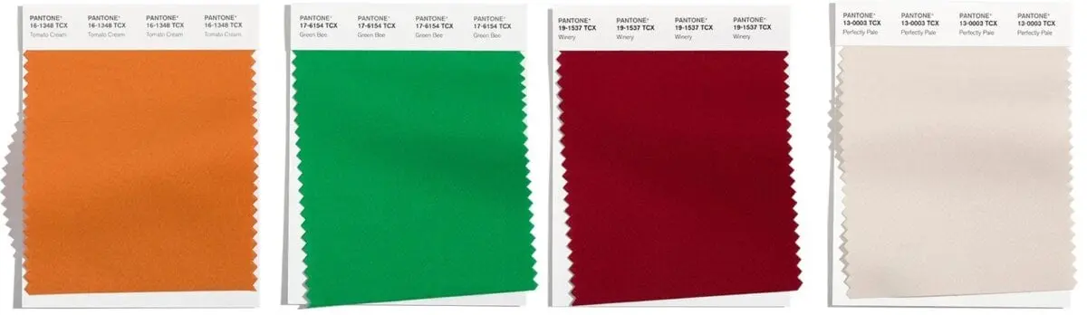 Pierwsze zestawienie zostało zainspirowane stylistyką nawiązującą do lat 60. i 70. Ciepłe barwy są nadrzędnym trendem ostatnich lat, jednak w estetyce retro nabiorą silniejszego wyrazu. Nasycone i odważne kolory, pojawiają się pod postacią dużych, organicznych lub geometrycznych wzorów. Pomarańcz, nieśmiało wkraczająca do wnętrzarskiego mainstreamu jako terakota i ochra, została doceniona przez Pantone. Wersja Tomato Cream idealnie łączy się z nasyconą zielenią Green Bee, tworząc duet rodem z lat 70. Uzupełnieniem zestawiania jest ciekawy odcień bordo o nazwie Winery, natomiast złamana biel Perfectly Pale, uspokoi temperamentne trio.