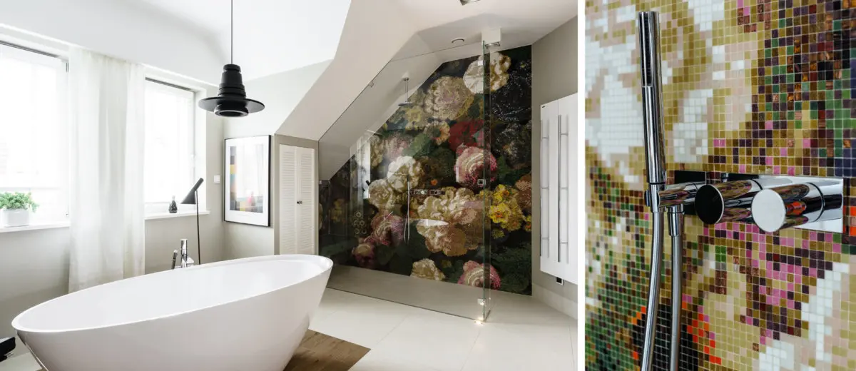 Jeśli jednak zależy komuś na wprowadzenie wzoru na płytkach, warto zdecydować się na motyw kwiatów lub tropikalny. Takie kafelki stylowo zastąpią pożądaną w łazience roślinność, która ożywia wnętrze.