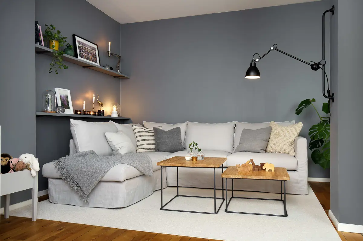 W przytulnym wnętrzu podstawę będzie stanowiło stonowane tło. Mowa o ponadczasowych bielach, szarościach czy beżach. To właśnie takie barwy działają na nas wyciszająco i odprężająco. Mocne tony zostawmy sobie na mniejsze powierzchnie, takie jakie pojedyncze meble czy dekoracje.