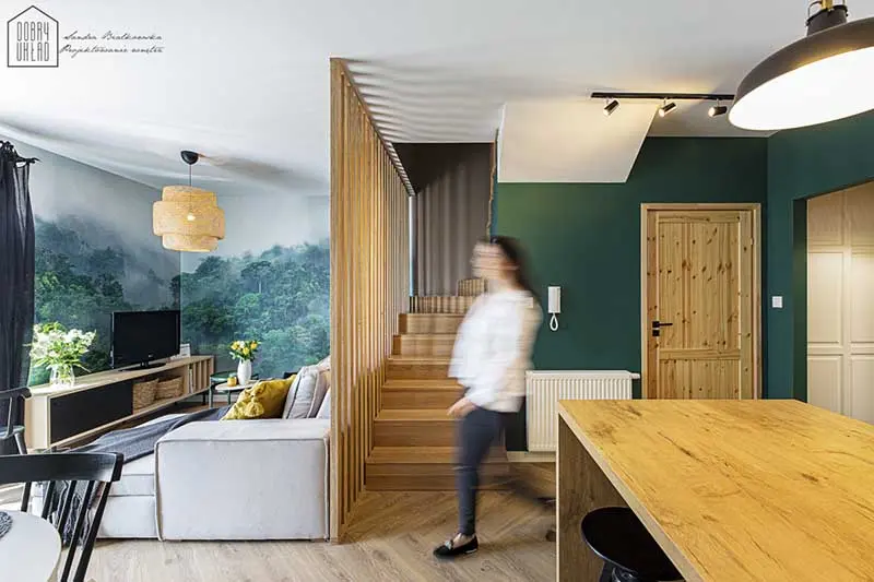 Jak opowiada nam projektantka – Sandra Białkowska – głównym założeniem było połączenie stylu boho, skandynawskiego i eklektycznego. Pani Ania pragnęła, aby wnętrze oprócz walorów wizualnych charakteryzowało się funkcjonalnością i przestronnością, która w rzeczy samej miała prowadzić do maksymalnego wykorzystania dostępnego metrażu. Oprócz tego, że mieszkanie miało być przytulne, nie mogło zabraknąć tam nuty szaleństwa.