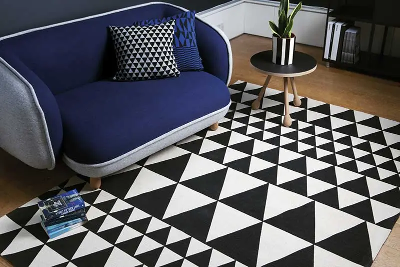 Choć dywany kojarzą się przede wszystkim z tradycyjnymi wnętrzami (przynajmniej mi), to odpowiednie dobranie sprawia, że równie dobrze odnajdą się w bardziej nowoczesnych mieszkaniach. Wystarczy postawić na ciekawy wzór. W przypadku stylu modern, który jest najczęściej wybieranym kierunkiem wedle którego urządzamy nasze cztery kąty, najlepiej zdecydować się na dywan w geometryczne wzory lub te wyraziste prostą linią. Co powiecie na stylowe paski lub modny chevron?