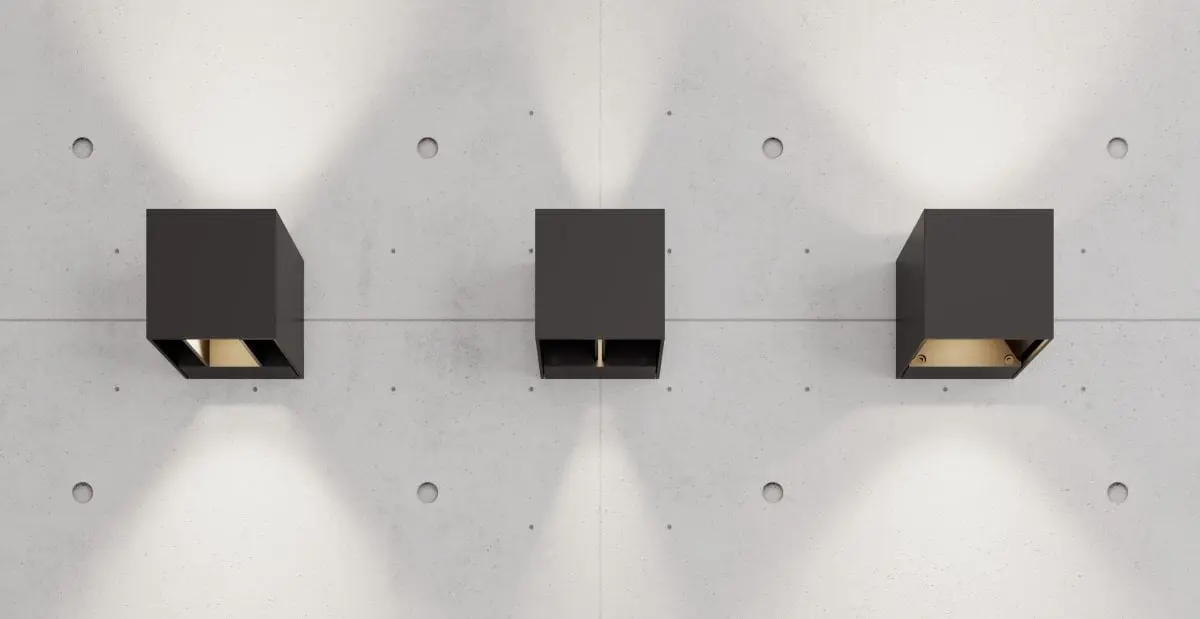 Dlatego warto zainstalować w strategicznych miejscach taśmy LED w szczelnych profilach aluminiowych. Alternatywną są kinkiety zapewniające skupione światło. Przykładem jest oprawa MR Side mająca klasę szczelności IP54 oraz ruchome „klapki”, za pomocą których możemy kształtować kąt rozsyłu światła – indywidualnie góra – dół. Oprawy te także możemy ściemniać klasycznie (dowolnym ściemniaczem do LED na ścianie) lub bezprzewodowo za pomocą aplikacji CASAMBI.
