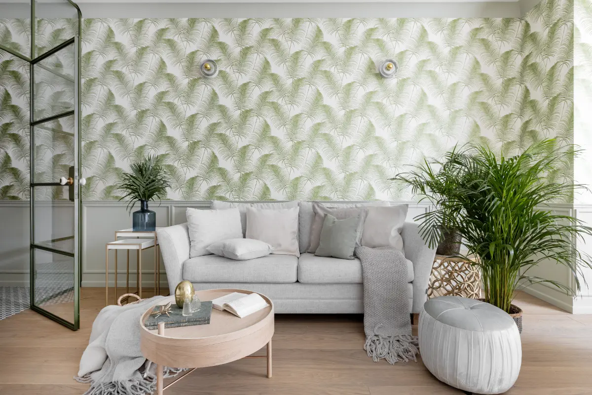 Zacznijmy od tego, że obecnie mamy kilka wiodących trendów jeśli chodzi o tapety. Pierwszym, który aktualnie jest top of the top są gładkie tapety imitujące teksturę tkanin. Jak wyjaśnia nasz specjalista – Karol Gruszka – mogą one jedynie udawać tkaniny (najczęściej jest to len, albo bawełna) lub być samymi tkaninami.