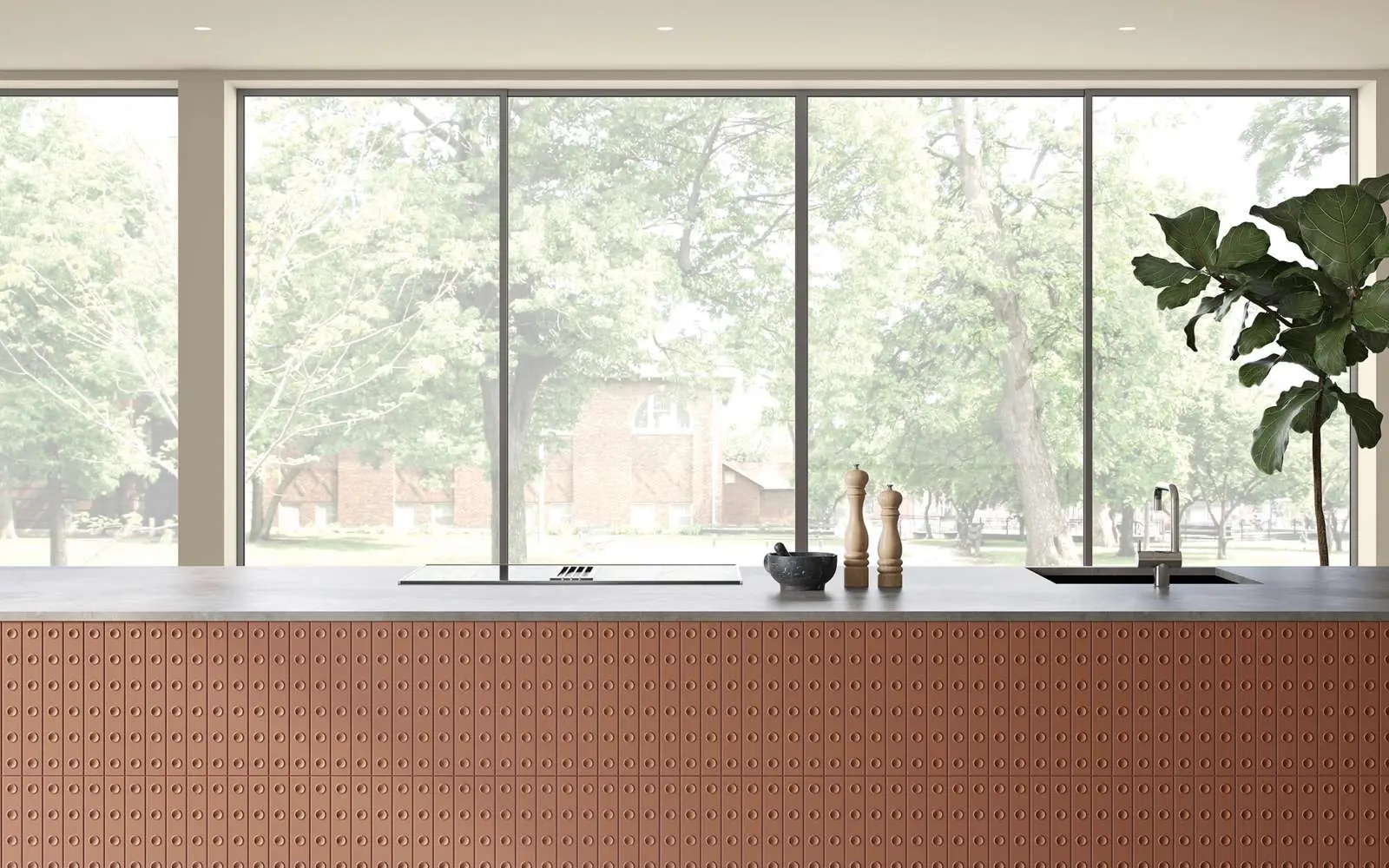 Marmur to jeden z najpiękniejszych kamieni naturalnych. Chętnie wykorzystujemy go zarówno jako materiał na blat, jak i dekorację – na ścianach, podłogach, a nawet frontach szafek. Coraz częściej z kamieni naturalnych wykonywane są także kuchenne akcesoria – deski do krojenia, moździerze czy wałki oraz dekoracyjne pojemniki do przechowywania. Jako materiał wykończeniowy nad blatem w kuchni, idealnie wygląda w towarzystwie minimalistycznych, nowoczesnych szafek.