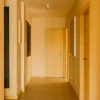 Projekt przedpokoju zrealizowany przez krakowską Grupę NONO wyróżnia się przede wszystkim tym, że nie pozostawiono tu ani milimetra ,,gołej” ściany. Sufit również nie został pominięty. Stworzenie niezwykle harmonijnego wnętrza, opartego na fakturze drewna zastosowanej na ścianach, podłodze i suficie oraz tapecie przypominającej tkaninę, było możliwe dzięki zaprojektowaniu systemu drzwi ukrytych.