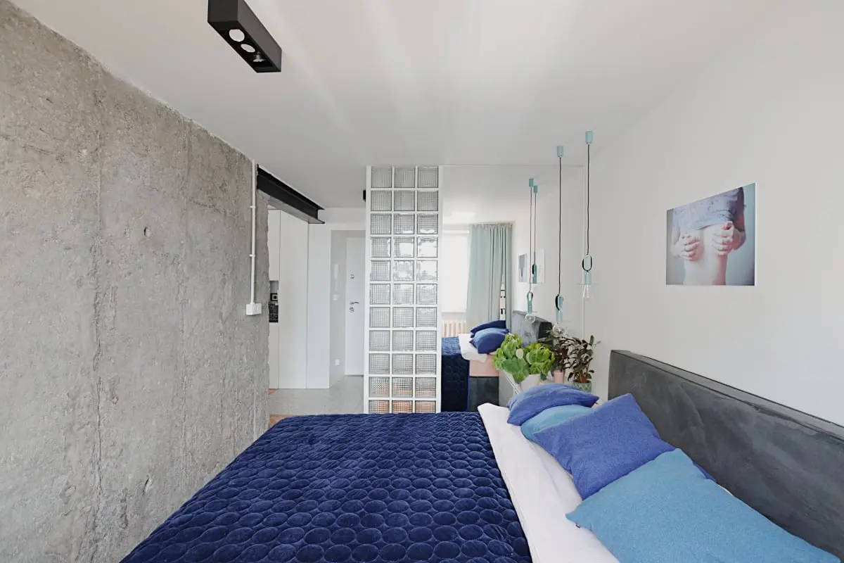 Luksfery to uniwersalny materiał, który może być wykorzystany w wielu pomieszczeniach oraz stylach, zarówno jako element dekoracyjny, jak i funkcjonalny. Architekci z pracowni Mistovia wykorzystali szklane pustaki w projekcie mieszkania, które łączy elementy PRL, vintage oraz współczesne. Na niewielkiej przestrzeni zorganizowano sypialnię, kuchnię oraz łazienkę, która znajduje się w półokrągłym kubiku wypełnionym luksferami.