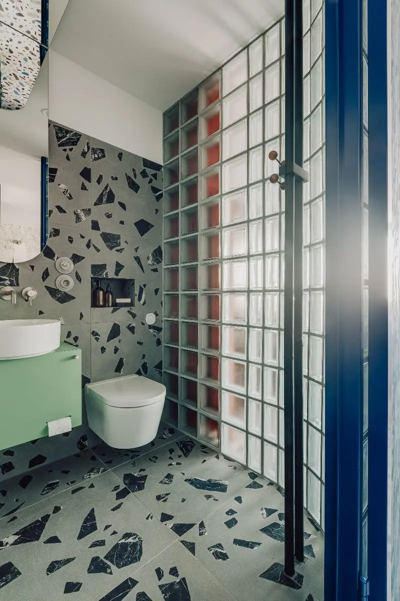 Luksfery mogą również zastąpić ściankę prysznicową. Takie zastosowanie znalazło się w artystycznym mieszkaniu w gdańskiej kamienicy, projektowanym przez architektki ze SKANDALstudio.