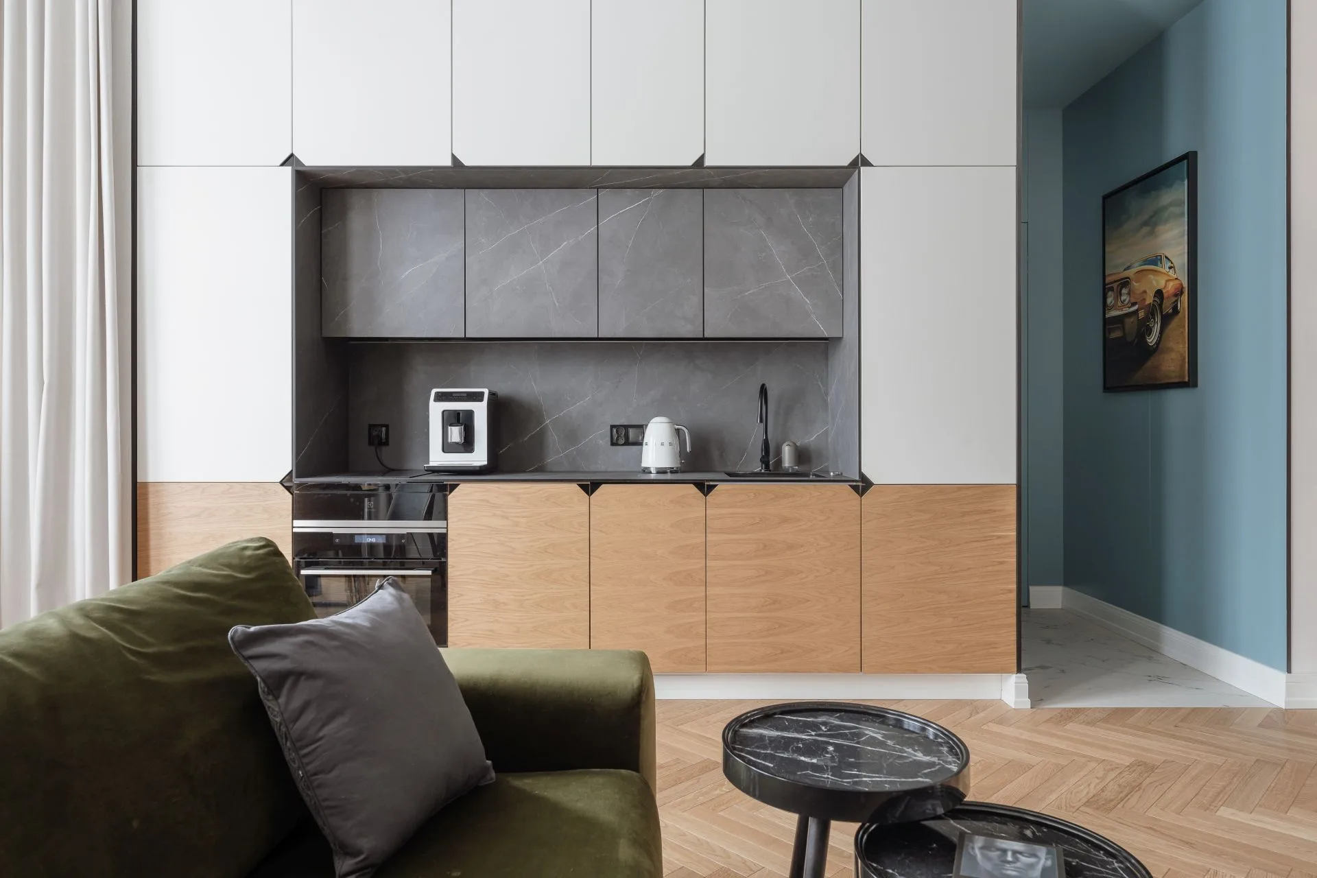 Patrząc pod kątem psychologicznym niebieski to symbol harmonii, spokoju i pozytywnego działania. Maluje kreatywność, uspokaja umysł i wzmacnia koncentrację. Jest wskaźnikiem dobrej komunikacji i pomysłowości oraz symbolem elegancji. To mój ulubiony kolor i każde wnętrze z niebieskimi odcieniami zwraca moją uwagę!