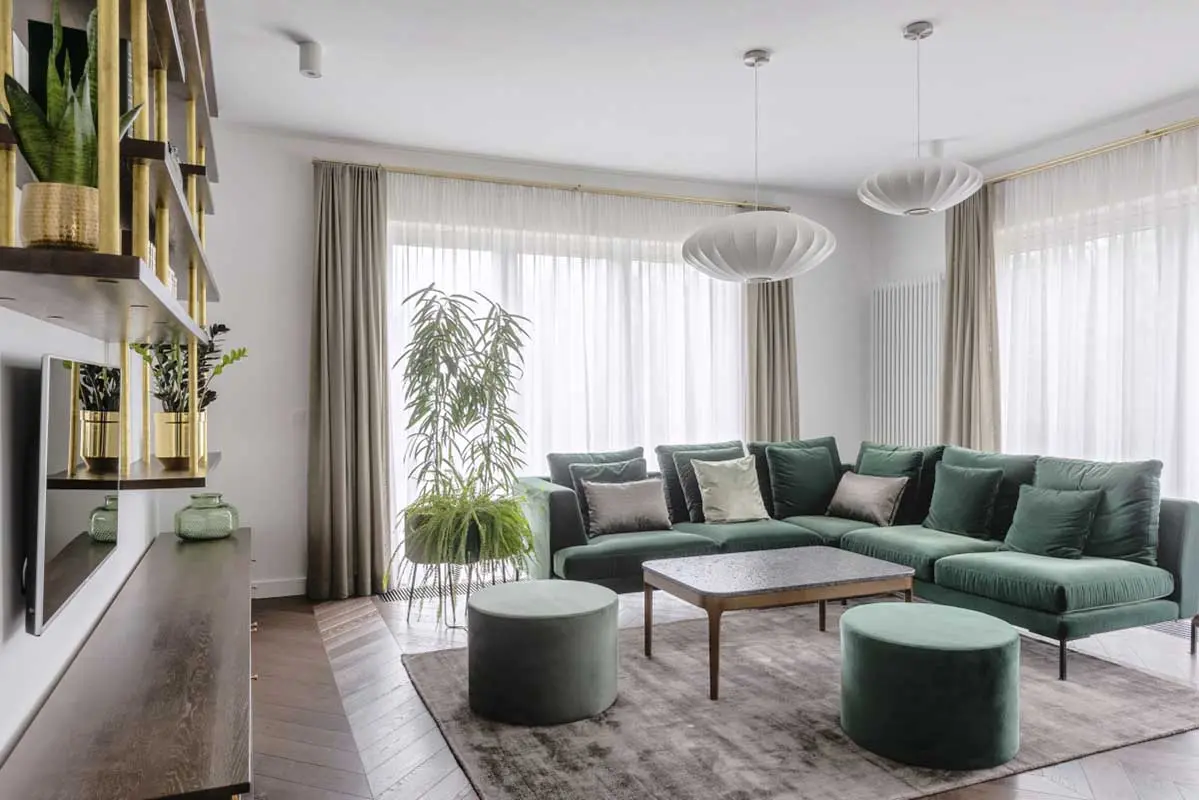 Jak podkreśla autor projektu wnętrza, Sebastian Marach z poznańskiej pracowni YONO Architecture dwie sofy ustawiono blisko siebie, by dla każdego z mieszkańców znalazło się miejsce na odpoczynek, a zarazem na wspólne spędzania czasu.