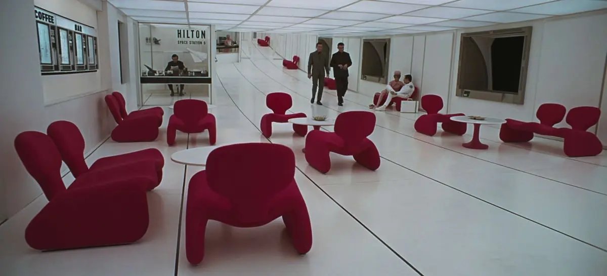 Podczas wyścigu kosmicznego między ZSRR a Stanami Zjednoczonymi, design Space Age stał się samym w sobie ruchem, mającym ogromny wpływ na wyobraźnię projektantów. Nowe technologie, tworzywa oraz sama koncepcja podróży kosmicznych miały dominujący wpływ na kształtowanie projektów. Jednym z najbardziej rozpoznawalnych mebli tego okresu, które do dziś pojawiają się w aranżacjach wnętrz, jest krzesło Vernera Pantona z 1959 roku. Falisty monoblok z poliestru, wzmocniony włóknem szklanym o wysokiej wytrzymałości na rozciąganie, został nazwany od nazwiska projektanta i stał się ikoną lat 60-tych. Kolejnym znamiennym dla designu Space Age projektem Pantona był Egg Chair. Kulista forma fotela, przypominająca kapsułę czasu, na stałe wpisała się w pop kulturę i inspirowała kolejne pokolenia projektantów. Warto również wspomnieć o kolekcji Tulip autorstwa Eero Saarinena. Składała się ona z krzeseł i stolika o charakterystycznej kielichowej formie z jedną nogą i płaską bazą. Stolik Tulip został użyty jako scenografia kosmicznego samolotu PanAm we wspomnianym już filmie „Odyseja kosmiczna”. Futurystyczne formy z tworzyw sztucznych wciąż pozostają żywe w portfolio współczesnych marek, takich jak Pedrali czy Artemide.